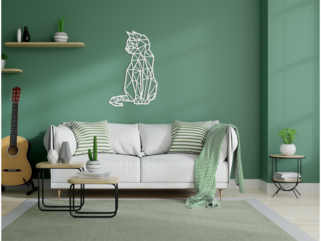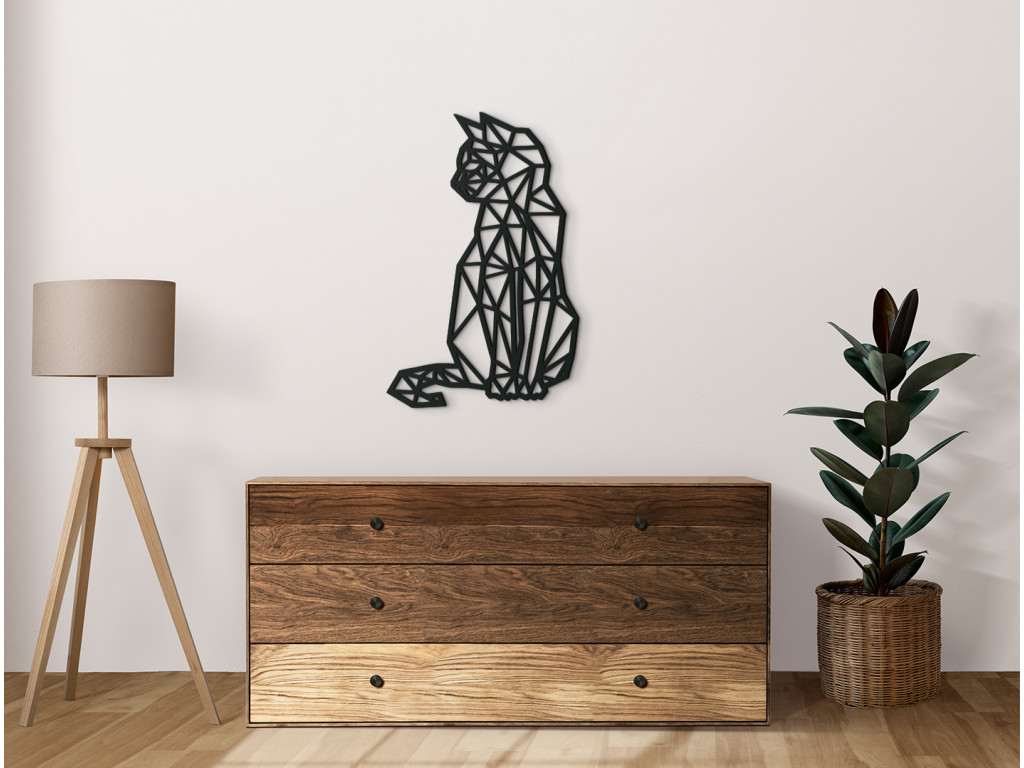 Azda neexistuje gracióznejšie zviera ako mačka. Dokonalá ladnosť akýchkoľvek pohybov je pre tieto stvorenia taká prirodzená, že prakticky vždy a všade vyzerajú pôvabne a uhladene. Rovnako je to aj s drevenou dekoráciou na stenu Polygonálna mačka, ktorá dodá osobitné čaro každej miestnosti. Nálepka znázorňuje sediacu mačku, ktorá zamyslene hľadí nabok.