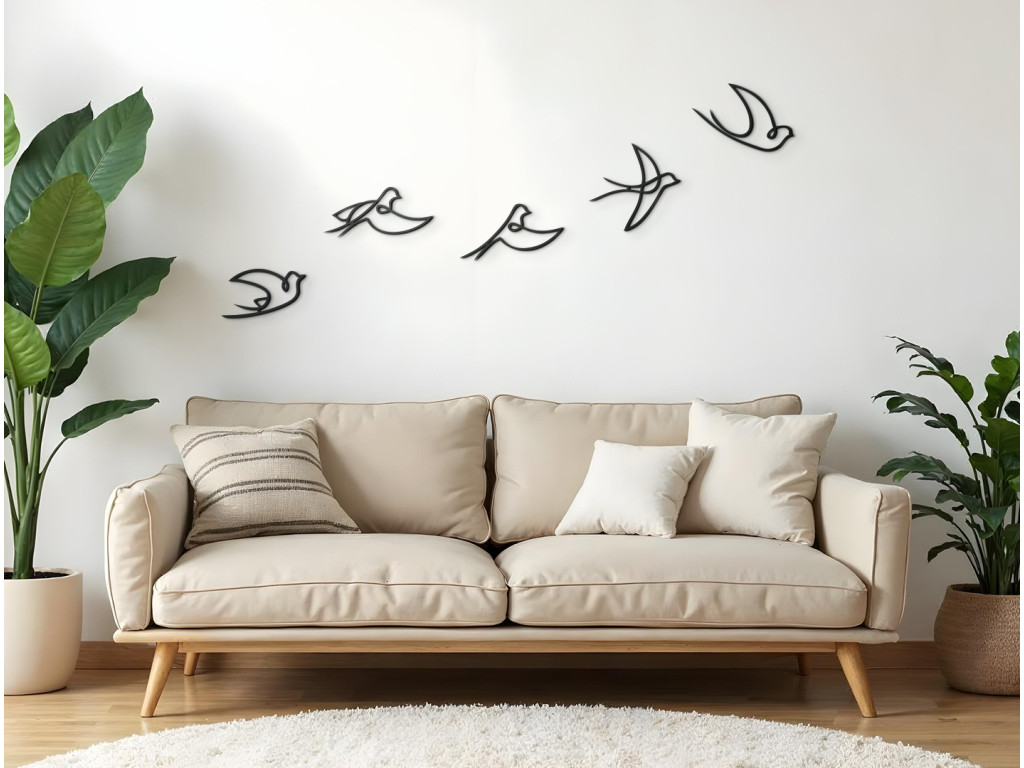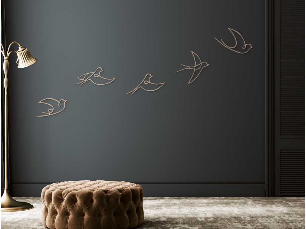 Tento dizajn je ideálny pre moderné aj tradičné interiéry, kde vtáky prinesú do priestoru nádych prírodnej krásy a elegancie. Let vtákov je perfektným riešením pre tých, ktorí chcú dodať svojmu domovu alebo kancelárii svieži a inšpiratívny prvok, ktorý zároveň odráža pokoj a pohyb prírody.