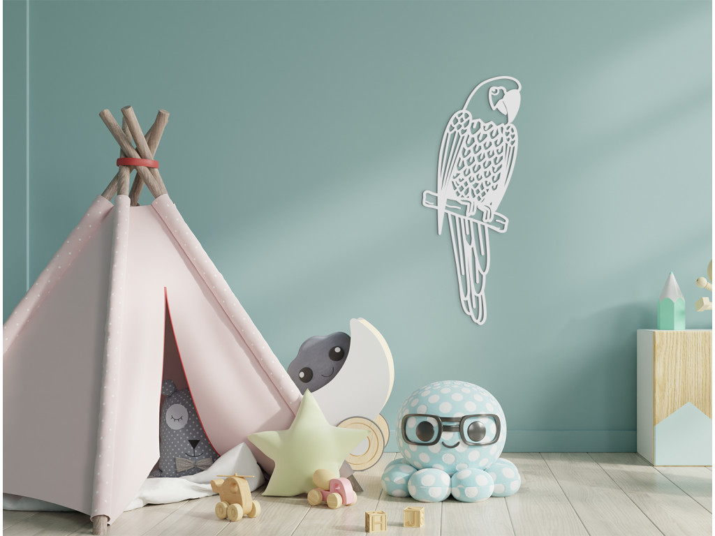 Veselý papagáj s úsmevom na tvári bude krásnym doplnkom do detskej izby. Nalepte deťom do izbičky drevenú dekoráciu na stenu s motívom známeho papagája a dodajte prázdnym stenám nový, atraktívnejší vzhľad.