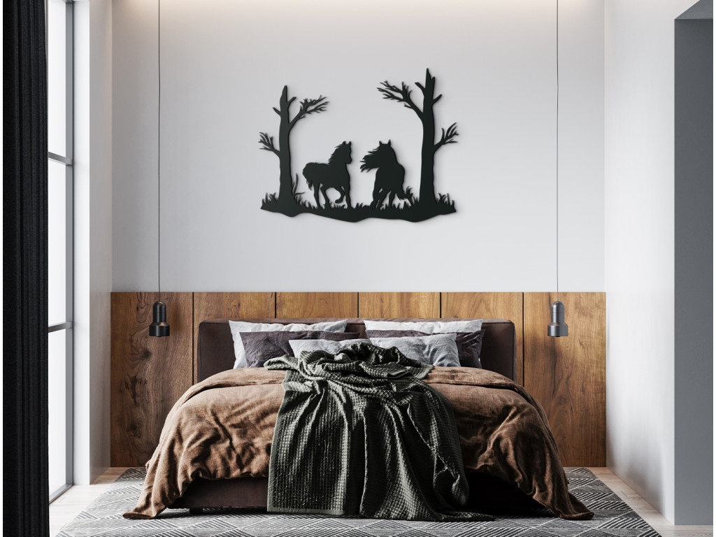 Si vous êtes amateur de chevaux, cette décoration représentant des chevaux au galop répondra certainement à vos attentes. Ce motif élégant égayera les murs de votre intérieur et peut être assorti aux autres éléments de décoration.