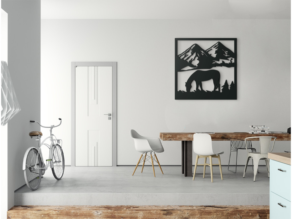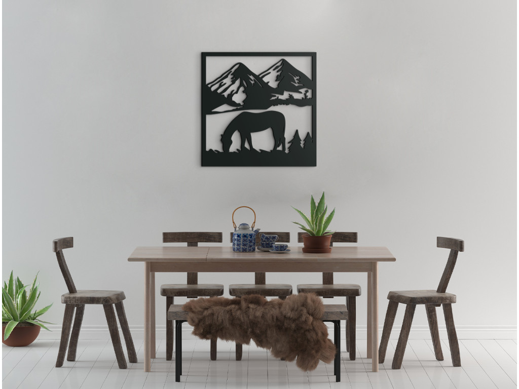 3D obraz na stenu s motívom koňa pasúceho sa na lúke s masívnymi horskými končiarmi v pozadí vyvoláva pocit pokoja a uvoľnenia. Nadčasový dizajn a efektné vyobrazenie z tejto drevenej dekorácie robia ideálny doplnok do moderných i tradične ladených miestností.