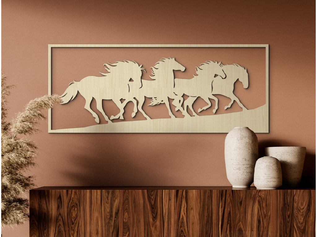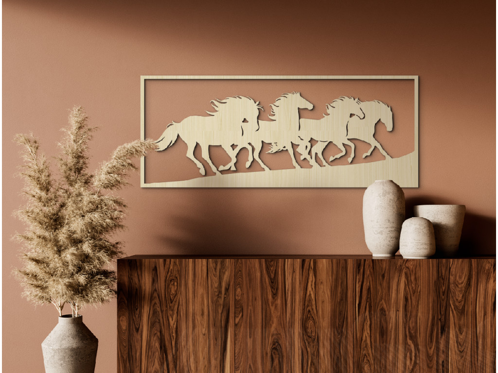 Obraz Nespútané kone prináša do priestoru divokú krásu a silu slobody. Každý kôň je stvárnený v pohybe, s rozviatou hrivou a prirodzenou dynamikou, ktorá dodáva interiéru energiu. Výrazný kúsok, ktorý osloví každého, kto cíti lásku k prírode, voľnosti a životu bez hraníc.