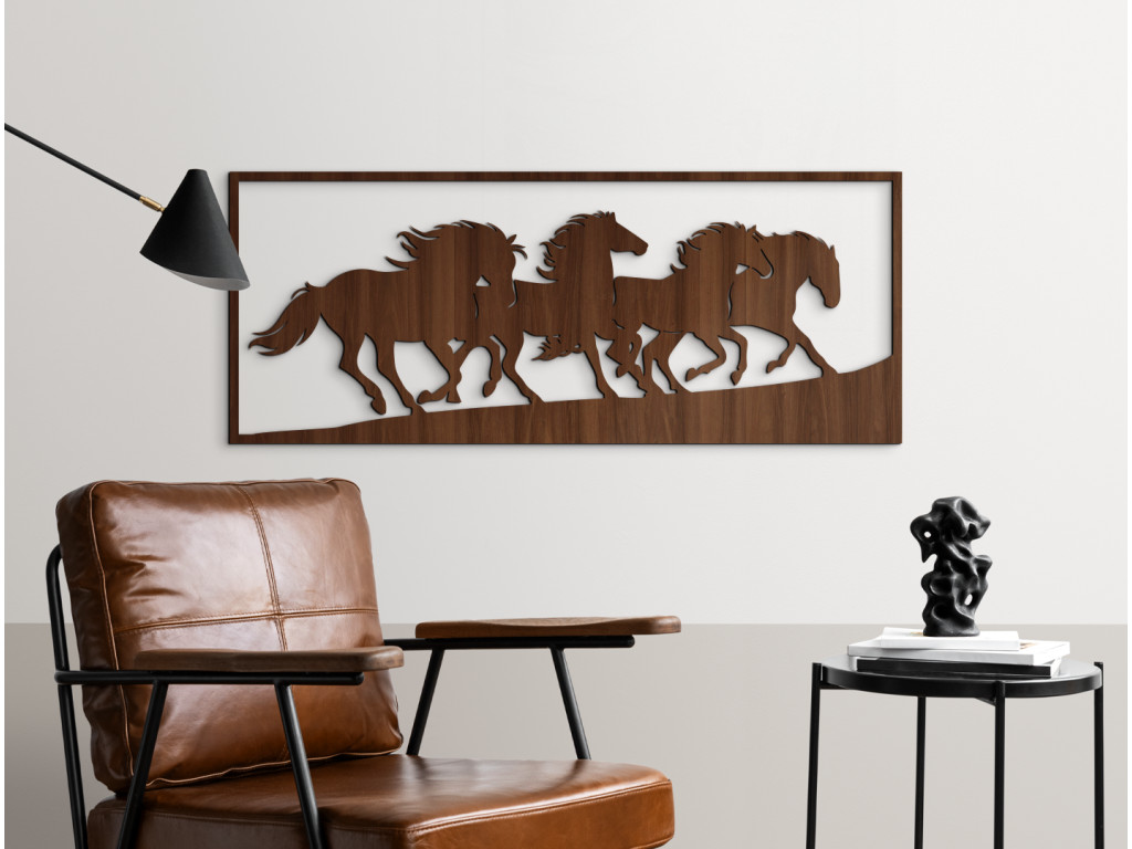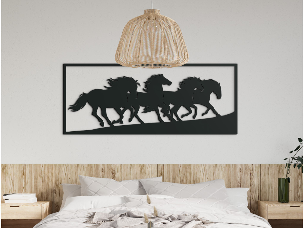 Le tableau Chevaux sauvages capture la force, la liberté et l’énergie du mouvement qui s’exprime dans chaque détail. Les quatre chevaux à la crinière au vent symbolisent la liberté, la passion et l’harmonie avec la nature. La sculpture précise confère à l’image réalisme et effet 3D, attirant le regard sous tous les angles. Vous pouvez choisir parmi plusieurs variantes de couleurs afin que le tableau s’intègre parfaitement à votre intérieur.