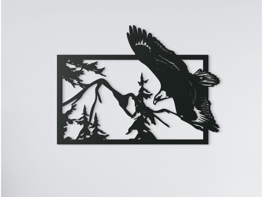 Pýchou každého orla sú jeho veľkolepé krídla. Keď ich orol úplne roztiahne, je to doslova pastva pre oči. 3D stvárnenie tohto majestátneho dravca pri lete nad hornatou krajinou nenechá chladným nikoho, kto obdivuje krásy prírody. Nadčasová dekorácia na stenu je obzvlášť vhodná do dizajnových obývačiek, kancelárií i predsiení.