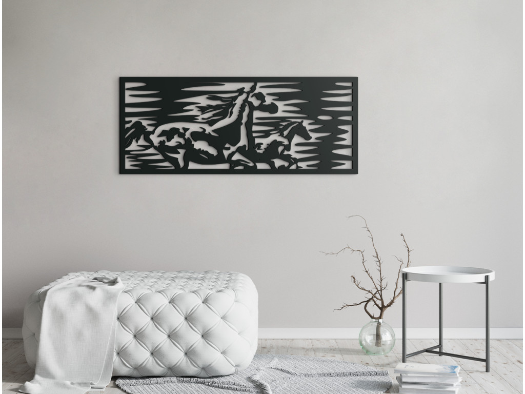 Cette décoration murale originale est parfaite pour compléter un intérieur moderne, et pas seulement pour les amateurs de chevaux. Vous pouvez l'accrocher au-dessus d'un canapé, d'une commode, d'une table ou d'un lit. Elle mettra en valeur chaque pièce et donnera du caractère à vos murs.