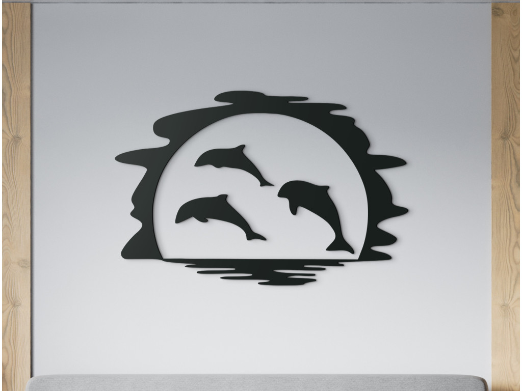 Les dauphins créent une atmosphère paisible. Sous forme de décoration murale, vous pouvez les accrocher dans une chambre d'enfant, une chambre à coucher ou un bureau, bref partout où vous avez besoin de vous concentrer ou de vous détendre. Les dauphins sautent au coucher du soleil, ce qui donne à la décoration une touche romantique.