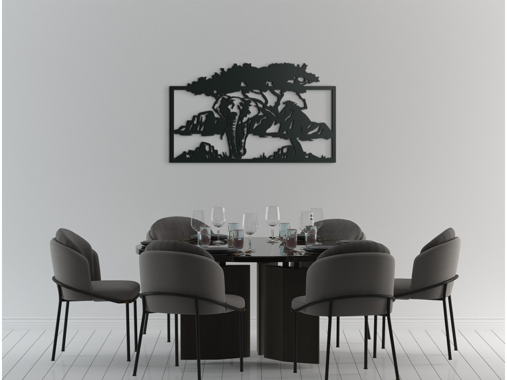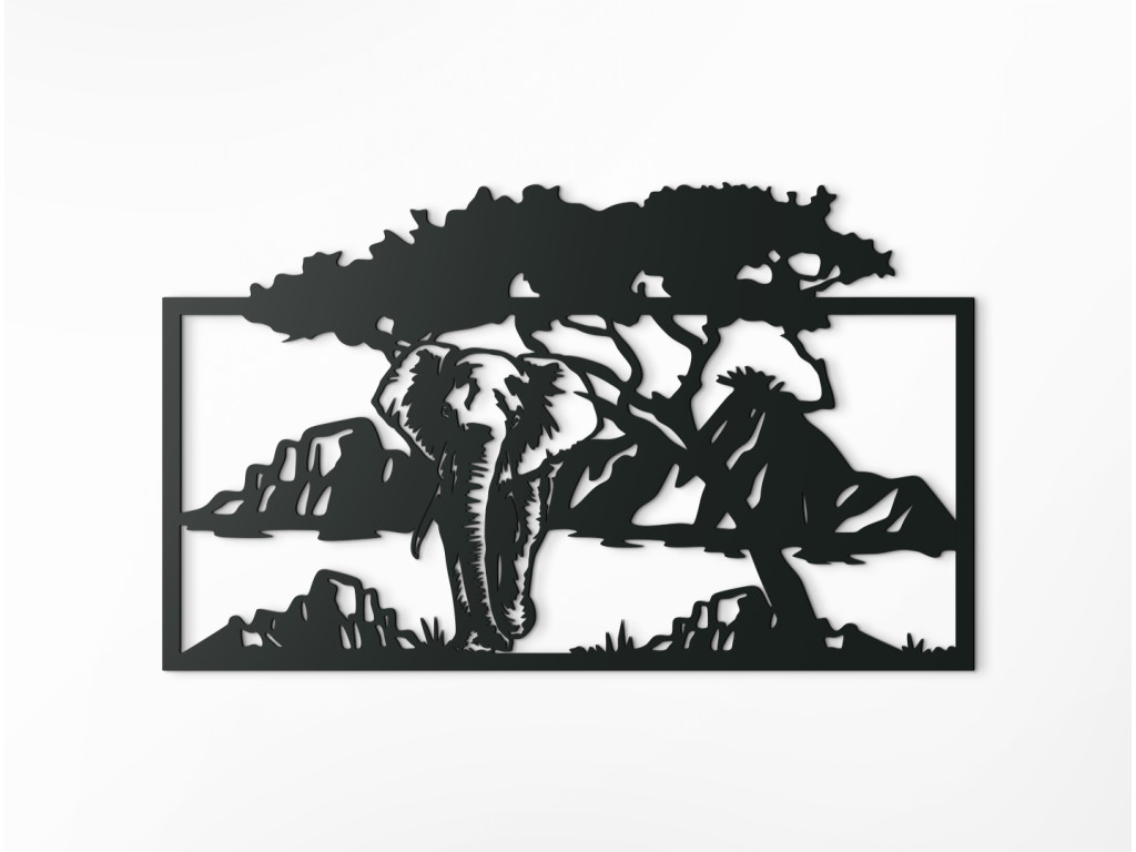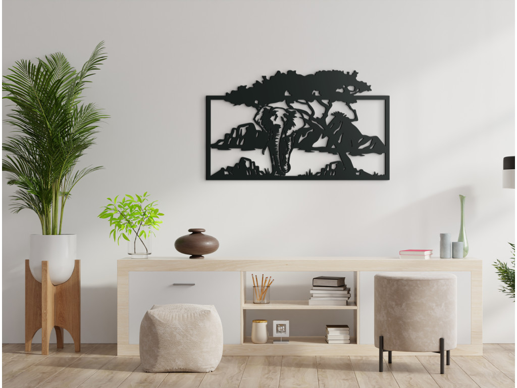 Slon je najväčším žijúcim suchozemským cicavcom a častokrát reprezentuje vnútornú silu, múdrosť a rozvahu. Drevený obraz Slon v savane ponúka pohľad na tohto zaujímavého afrického hrubokožca, ako sa prechádza savanou. Dekorácia na stenu vďaka svojmu exotickému motívu ozvláštni akúkoľvek miestnosť v dome či v byte a dodá jej príťažlivú atmosféru ďalekých krajín.