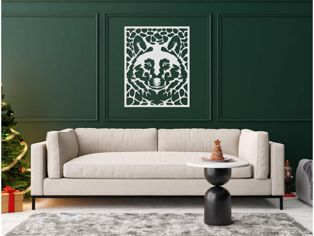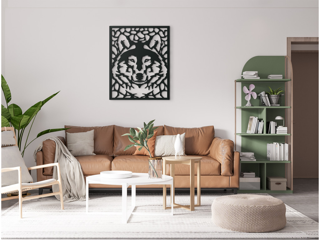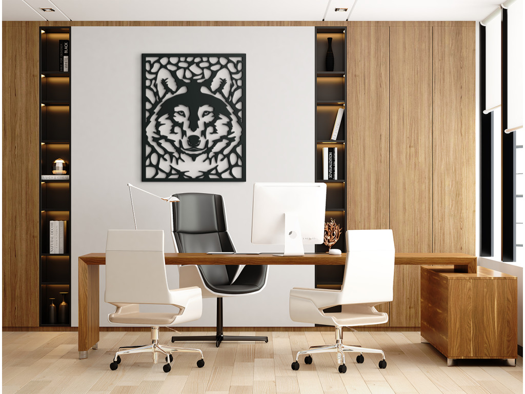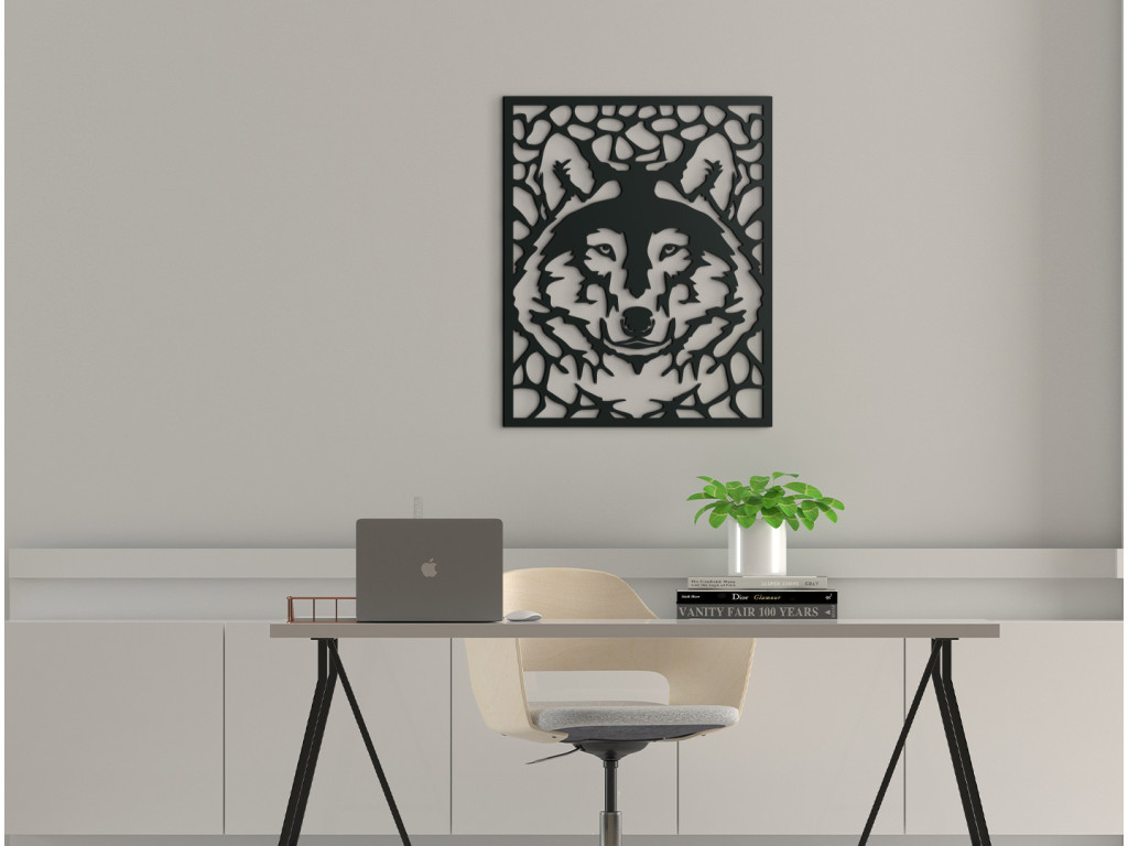 Le tableau mural en bois avec un motif de tête de loup convient particulièrement aux intérieurs modernes. Le loup incarne la force, l'énergie et la détermination ; sa représentation apportera du caractère à la pièce.