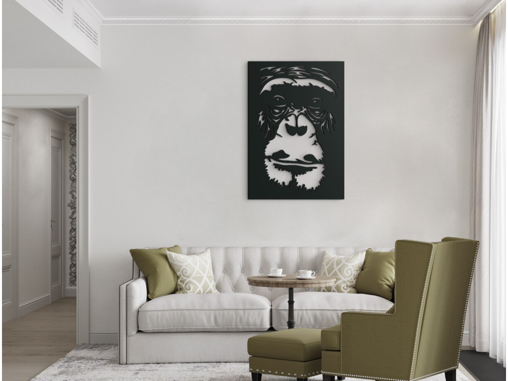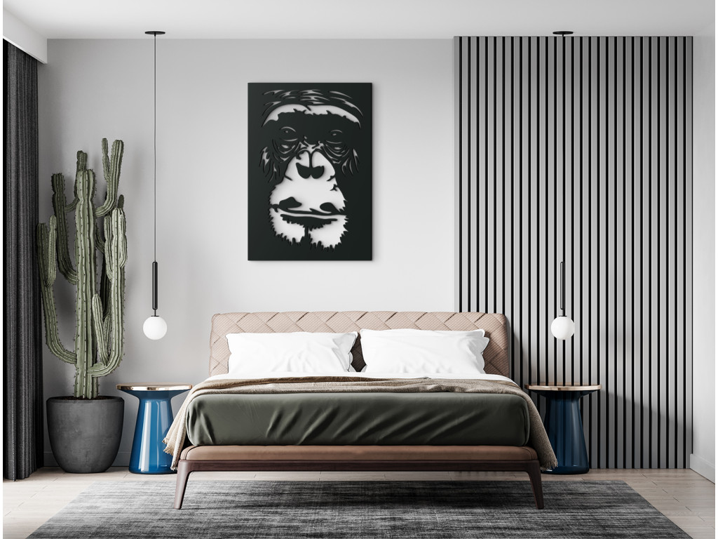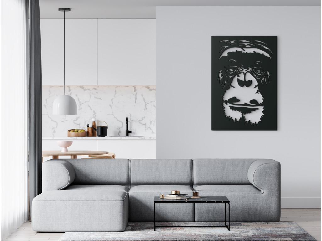 Zaujímavá dekorácia na stenu so zvieracím motívom vnesie do interiéru nádych exotiky. Trendový dizajn znázorňuje tvár šimpanza s jeho charakteristickými hlboko posadenými očami a širokými nozdrami. Drevený obraz si môžete zvoliť z viacerých farebných vyhotovení.