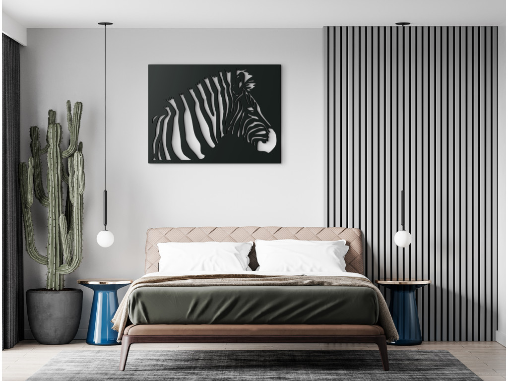 Máte radi moderné obrazy so zvieracou tematikou? Drevený obraz Zebra dodá punc moderného štýlu a elegancie do ktorejkoľvek miestnosti. Obraz má tvar obdĺžnika a ponúka pohľad na jedno z najzaujímavejšie sfarbených zvierat. Nadčasové zebrie prúžky spestria a oživia moderný i tradičný interiér.