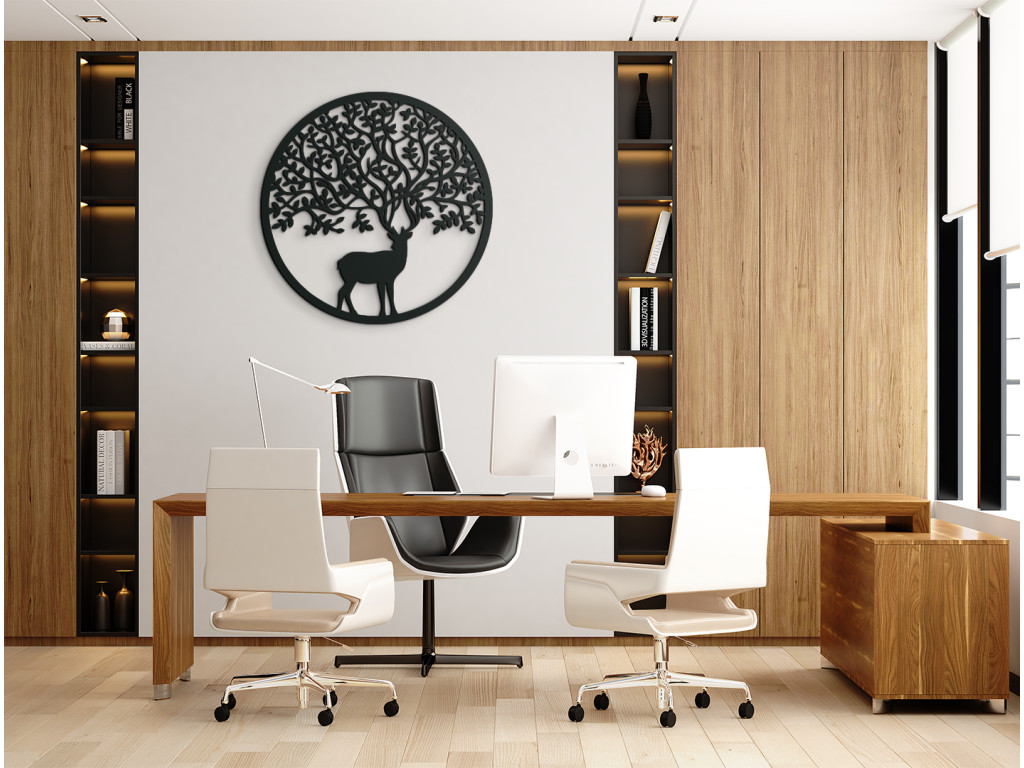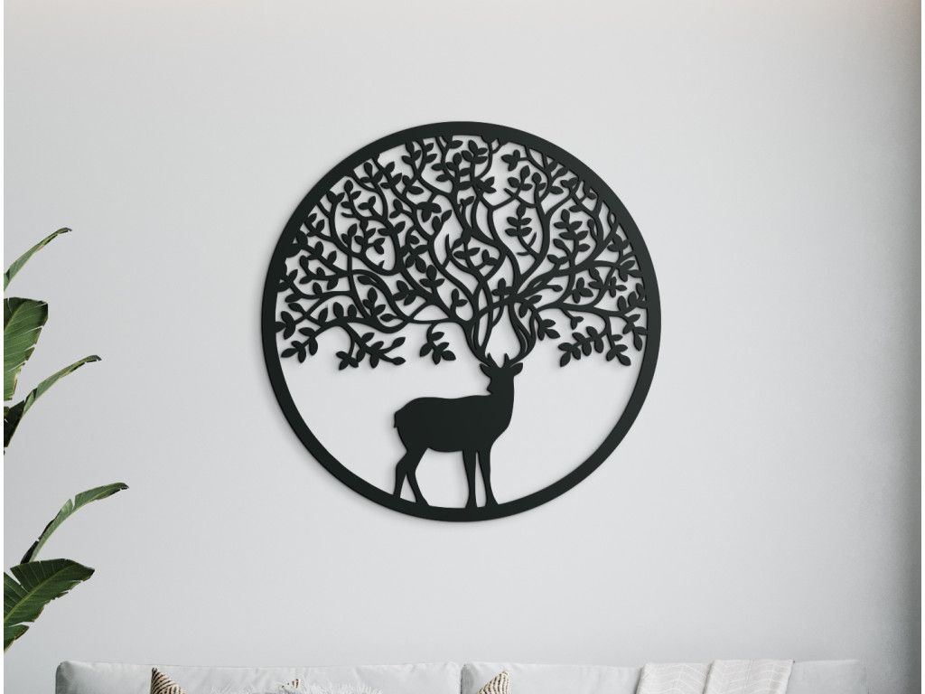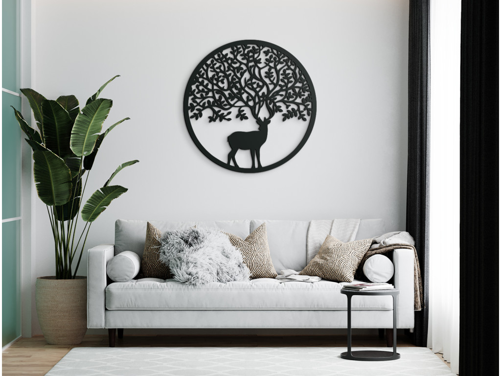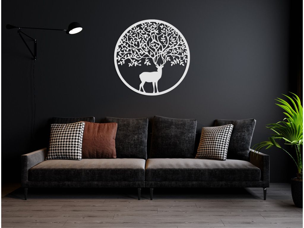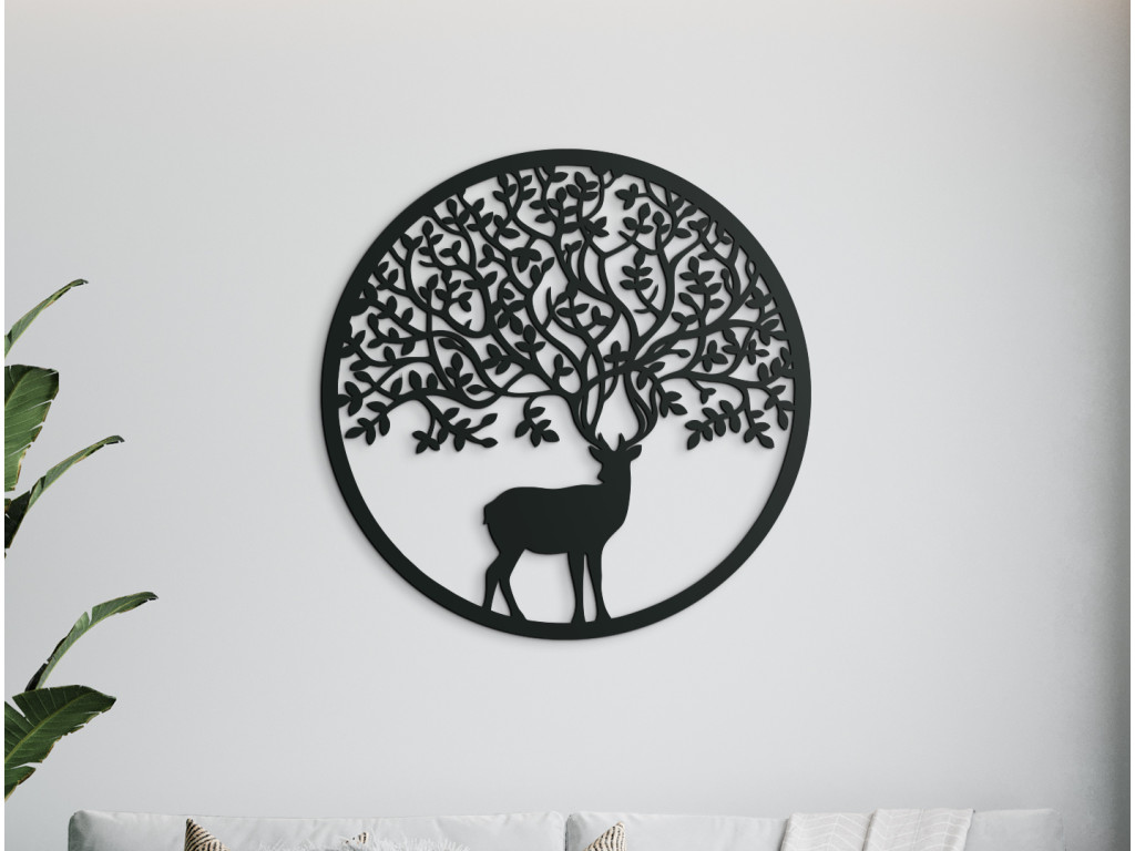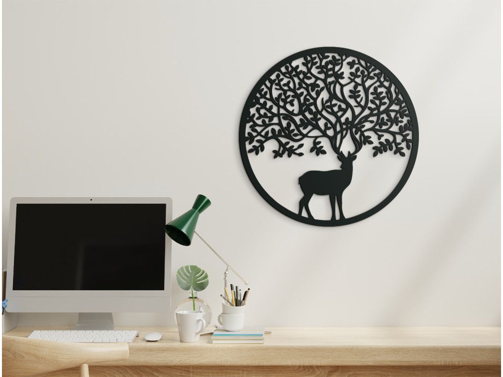 Ste milovníkom lesných zvierat? Okrúhly drevený obraz Jeleň je kombináciou moderného dizajnu a jednoduchosti. Je na ňom vyobrazený jeleň s parohami pripomínajúcimi konáre stromov. Drevený obraz je ideálny do moderných aj klasických interiérov, chát, kancelárií a iných priestorov. Tiež bude ideálnym darčekom pre poľovníkov, milovníkov hôr či turistov.