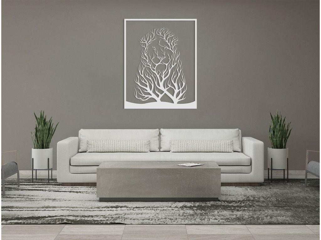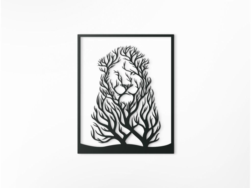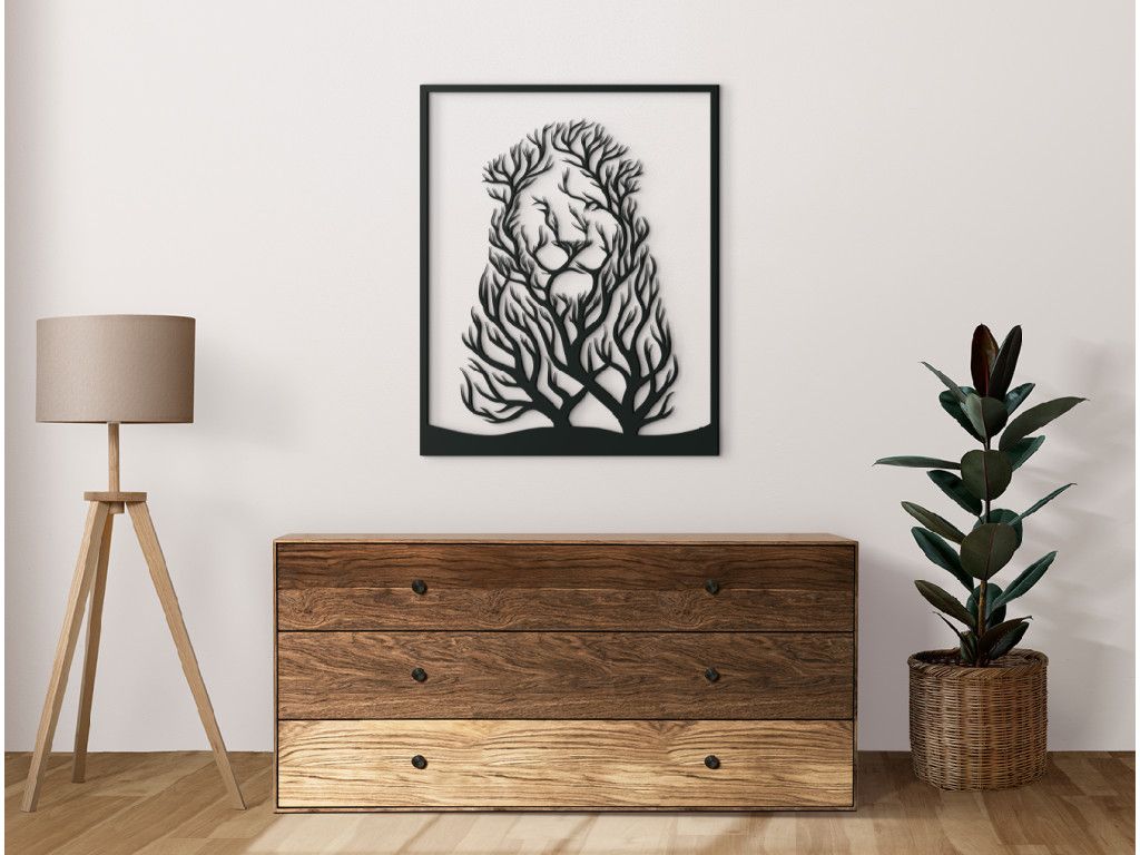 Nalepte si na stenu zaujímavý drevený obraz Lev a stromy. Dekorácia s motívom dvoch navzájom sa prerastajúcich stromov pri pozornejšom skúmaní odhalí nezvyčajné tajomstvo - konáre spolu vytvárajú podobu levej hlavy s hustou hrivou. Nálepku si môžete nalepiť napríklad nad posteľ do spálne, do obývačky nad komodu alebo nad stôl do kancelárie.