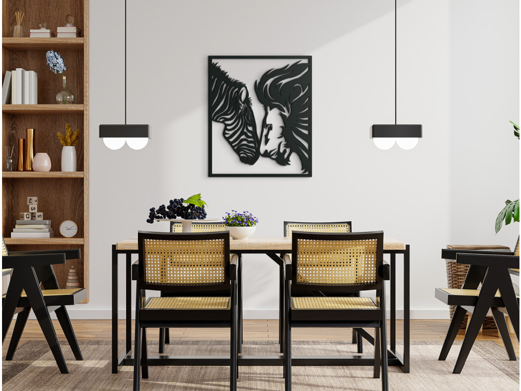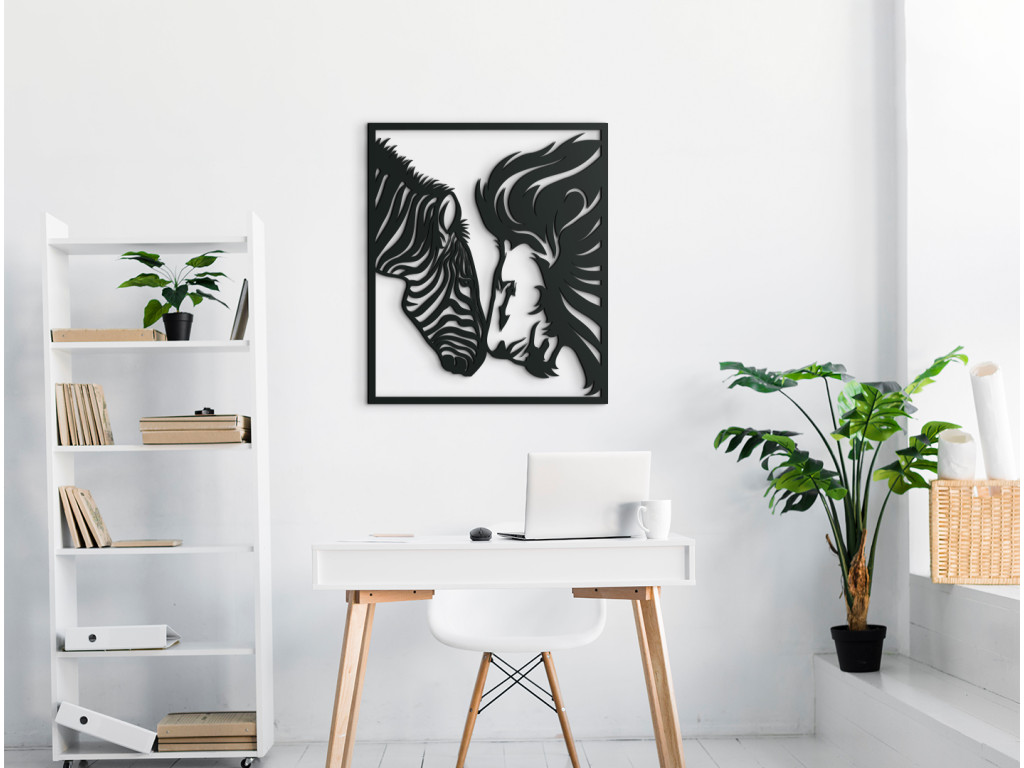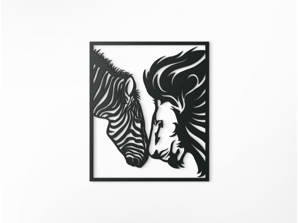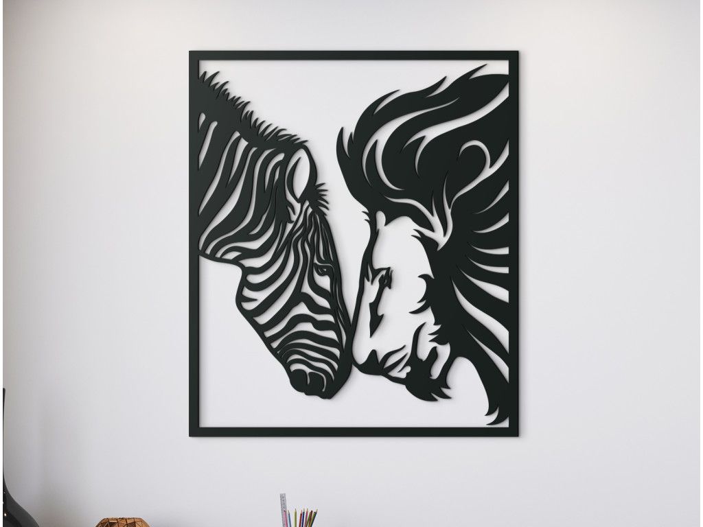 Ak túžite priniesť do svojej domácnosti dokonalý mier a harmóniu, potom si určite nenechajte ujsť drevený obraz Lev a zebra. Je na ňom vyobrazená hlava zebry a hlava leva, ktoré sa k sebe skláňajú a dotýkajú sa nosmi, pričom si hľadia do očí so vzájomným porozumením. Nálepka je vhodná napríklad do obývačky nad gauč či nad posteľ do spálne, skrátka kdekoľvek, kde si chcete vychutnávať pokoj a súlad.