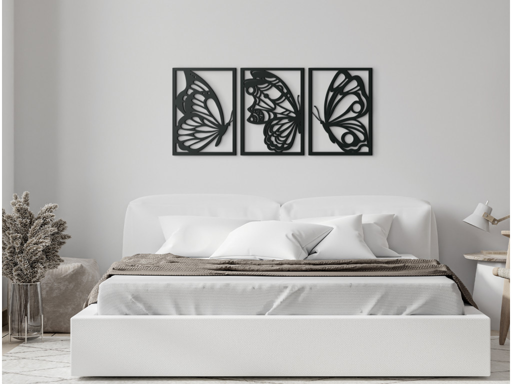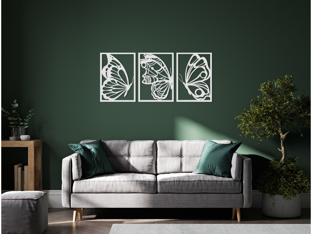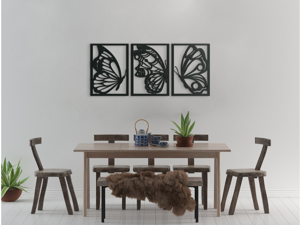 3D obraz na stenu Motýle sa skladá z troch samostatných dielov. Každý z nich predstavuje samostatný obraz s jedným motýľom, pričom zakaždým ide o iný druh. Drevená nálepka je skvelým darčekom pre zberateľov motýľov, ale tiež pre každého, kto sa rád obklopuje krásnymi vecami.