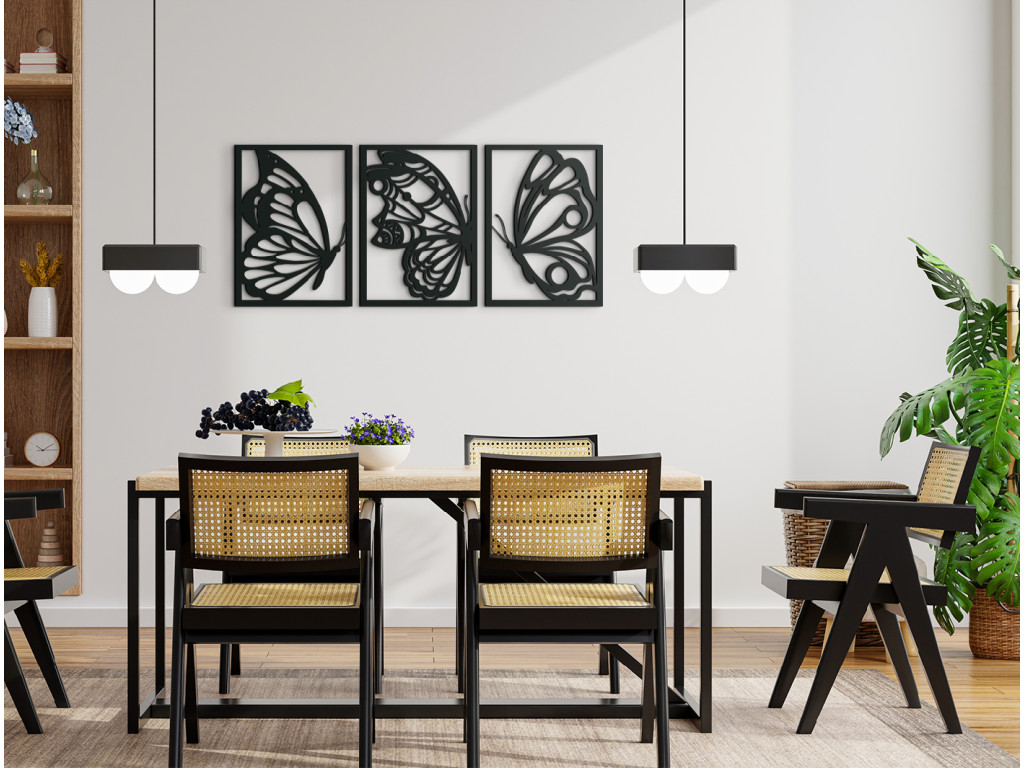 Installez sur votre mur une décoration aérienne avec un motif de papillons en vol. Son design original apportera légèreté et beauté à la pièce de votre choix. Elle convient par exemple au salon, à la salle à manger ou à la chambre à coucher.