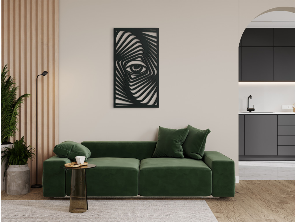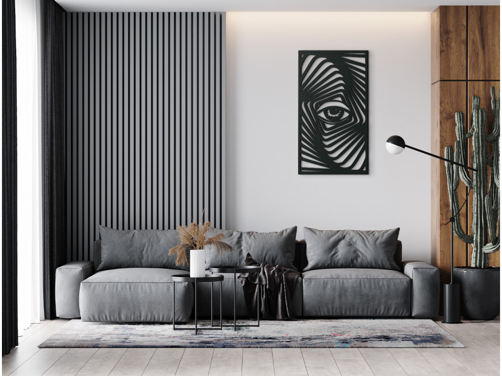 Ozdobte si obývačku, spálňu alebo jedáleň drevenou nálepkou na stenu v modernom dizajne. Trendová dekorácia na stenu zobrazuje Zebriu tvár, pričom centrom obrazu je jej oko. Univerzálny motív umožňuje využiť obraz aj ako zaujímavý darček.