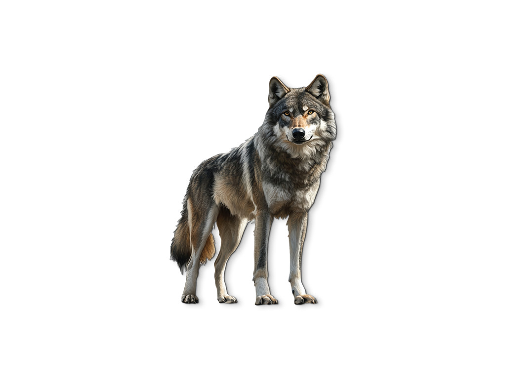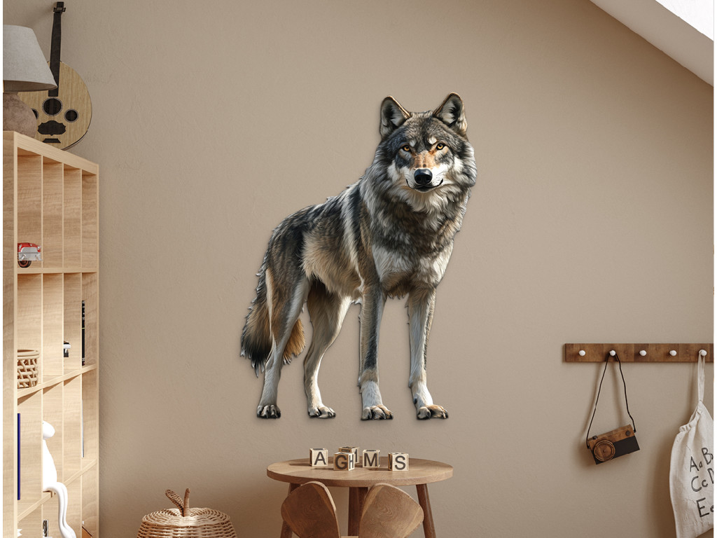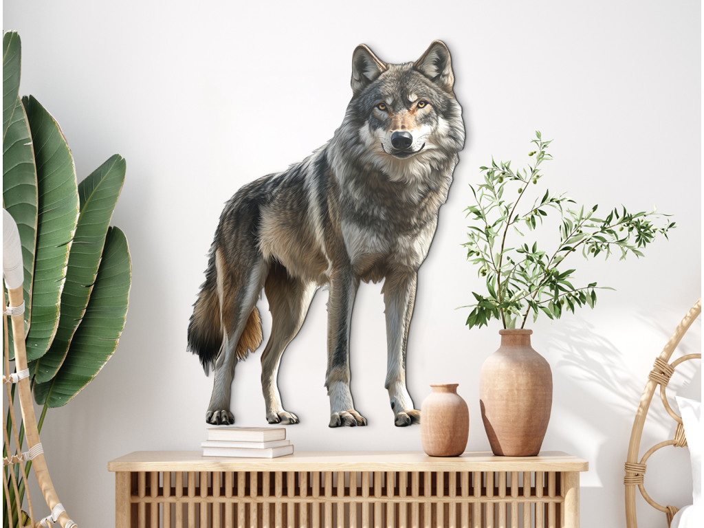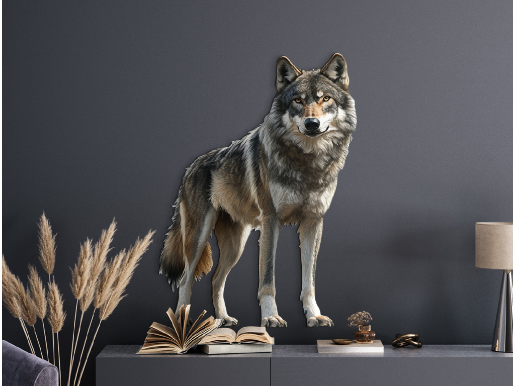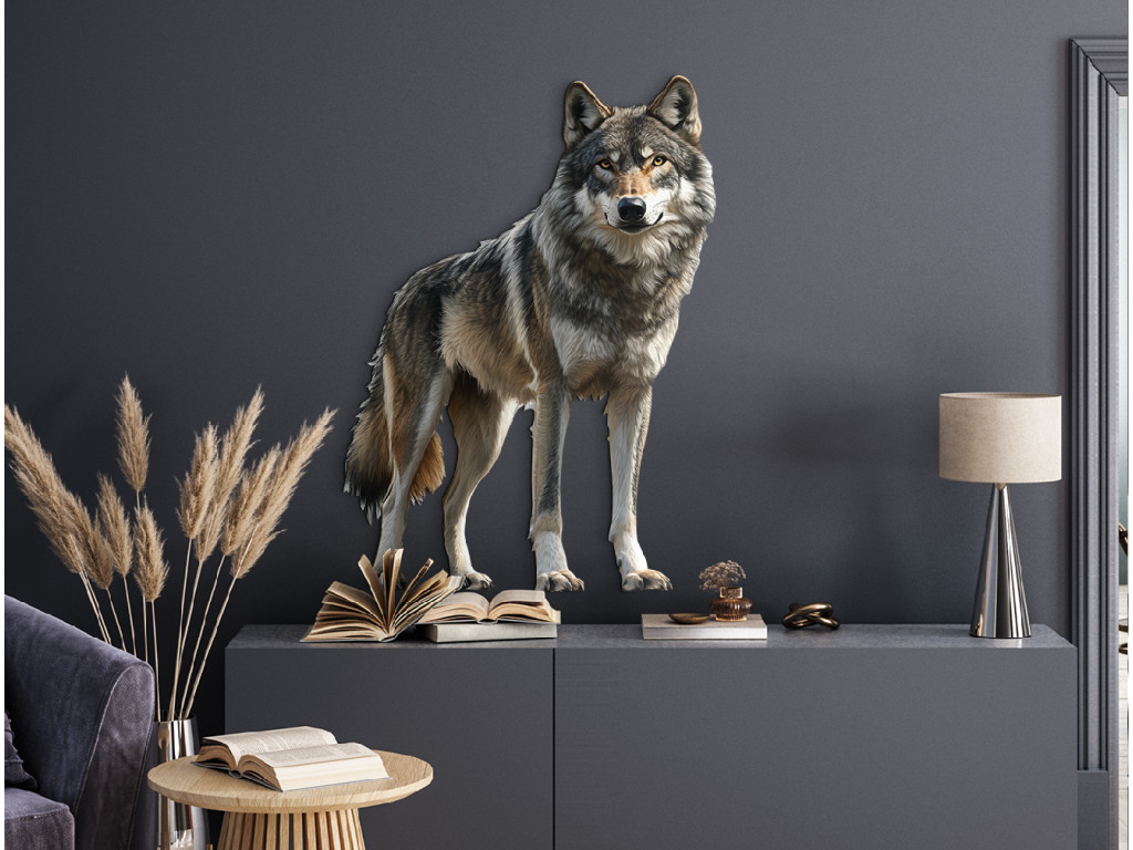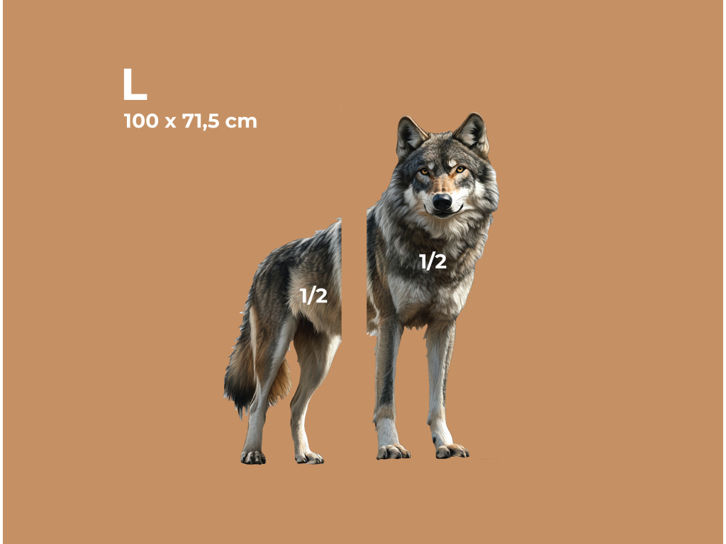 Le loup, dans une posture calme, comme s'il écoutait le silence qui l'entoure. Sa stabilité et son attitude sereine rayonnent de dignité, de sagesse et de connexion avec la nature sauvage. Ce tableau symbolise l'équilibre entre la force et la tranquillité – idéal pour un intérieur à la fois harmonieux et puissant.