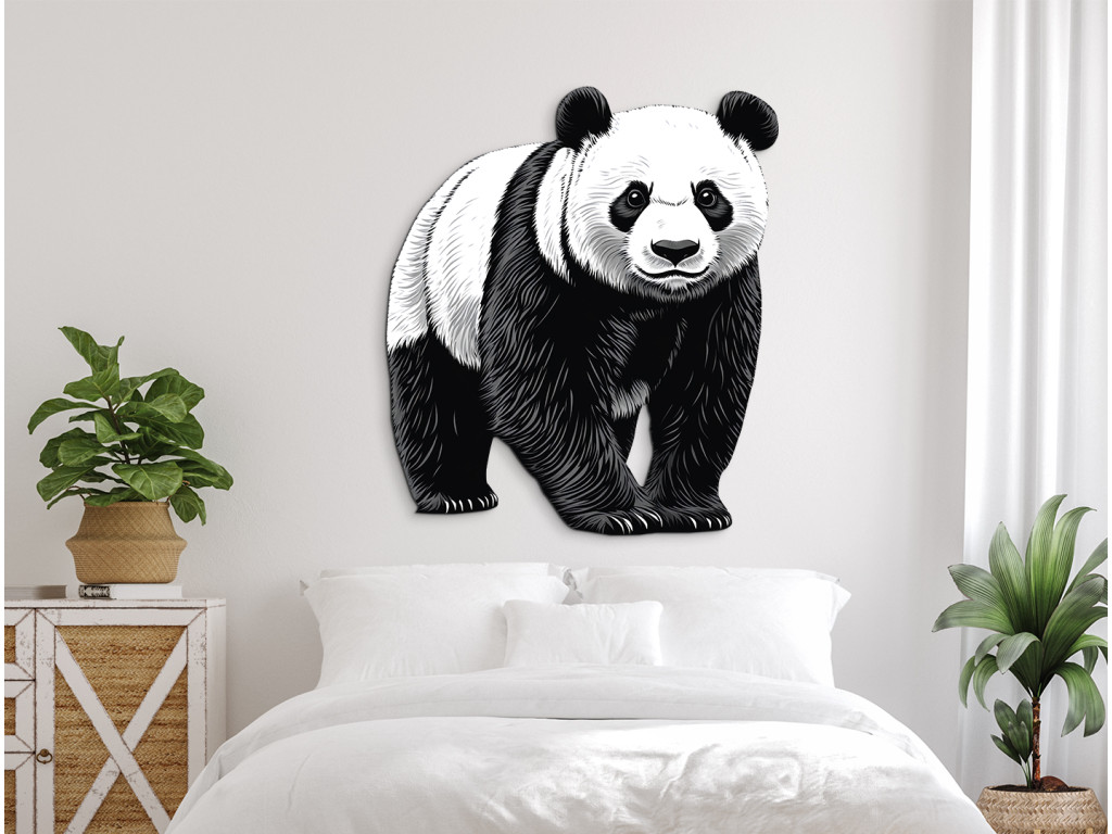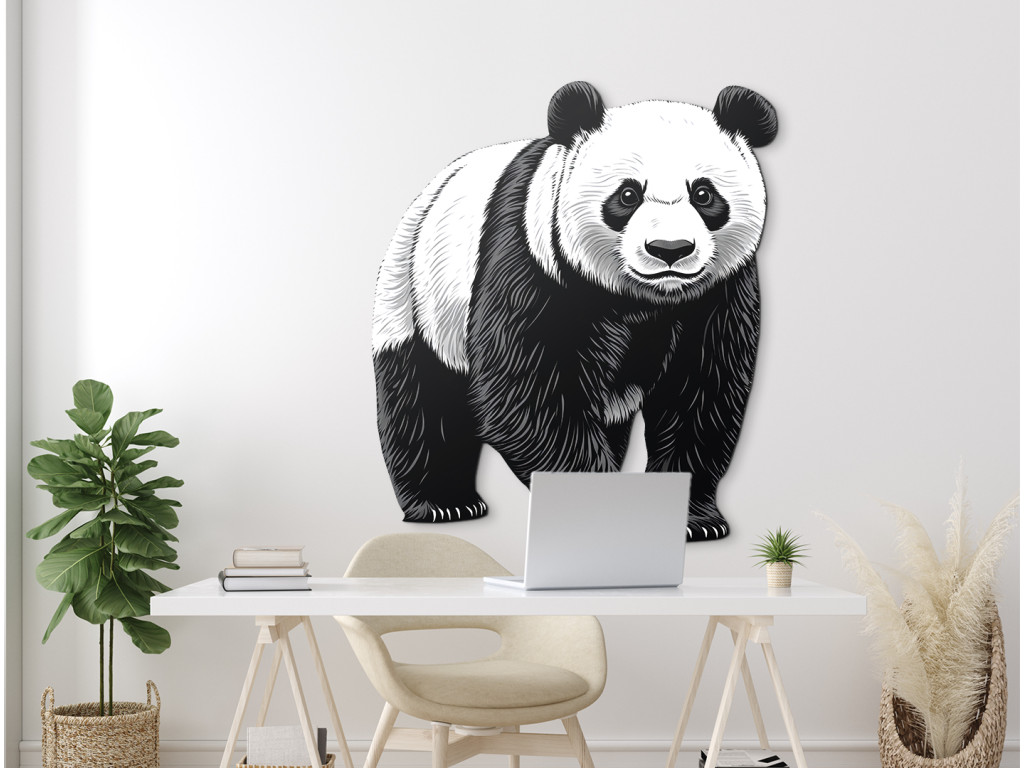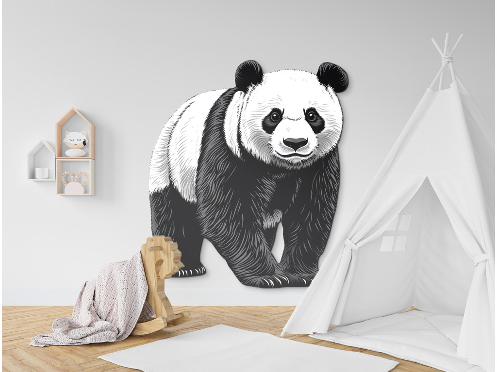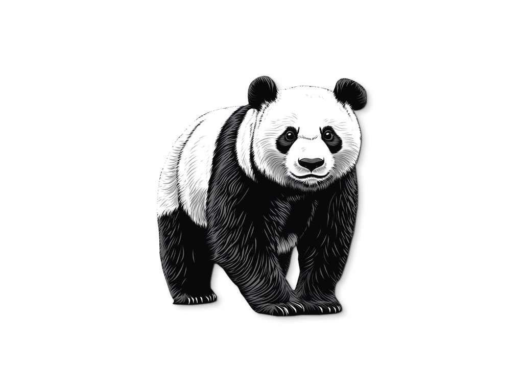 Cet autocollant noir et blanc détaillé représente un panda majestueux dans une posture calme. Son expression paisible et le dessin distinctif de sa fourrure en font un élément impressionnant, symbole de calme, d'équilibre et de beauté naturelle.