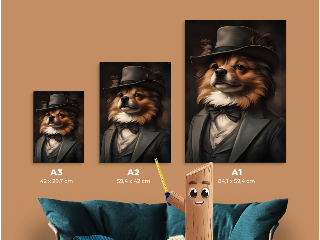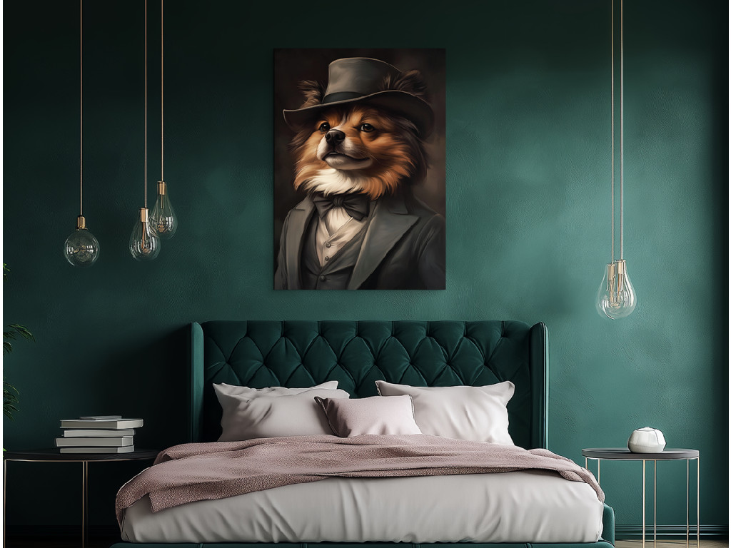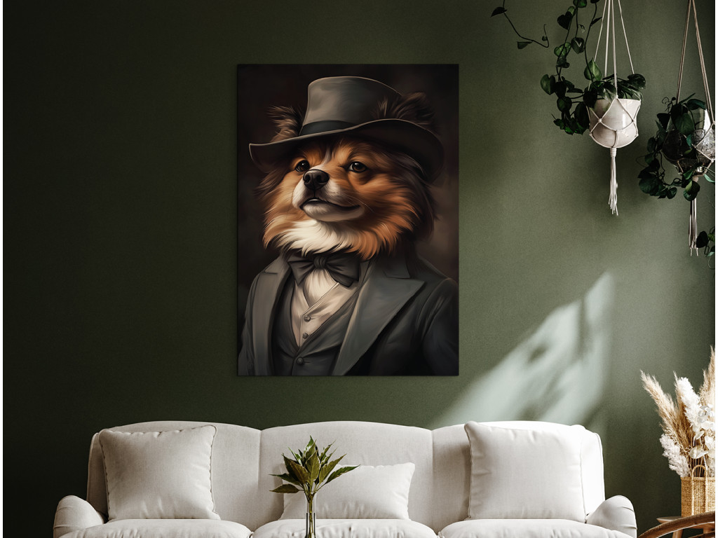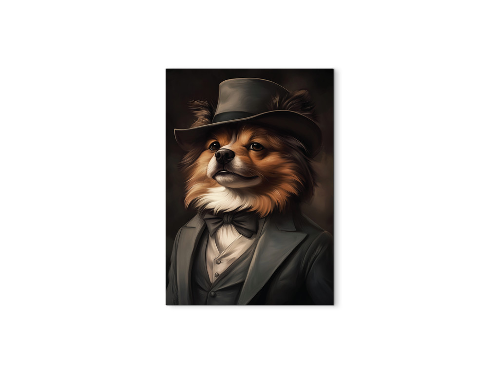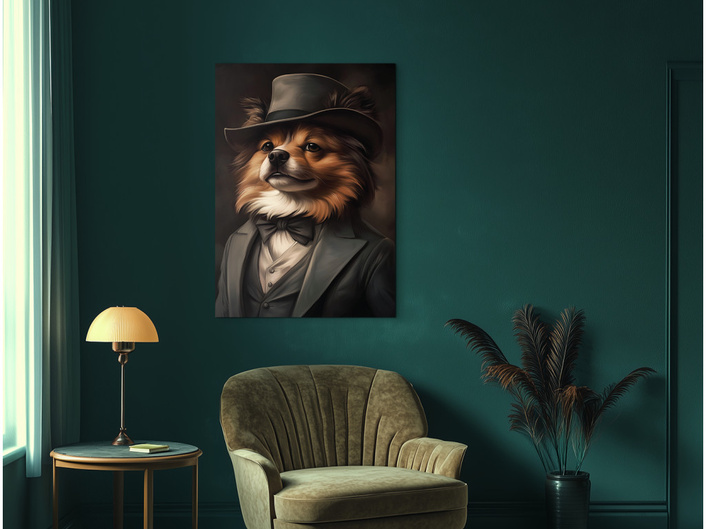 Pomeranian en costume est une œuvre d'art originale qui représente un charmant spitz nain vêtu d'un élégant costume et d'un chapeau. Son pelage épais et touffu, sa « crinière » caractéristique autour du cou et son regard vif font de ce tableau un accessoire à la fois incontournable et amusant. La combinaison de son allure aristocratique et de son charme canin en fait une pièce idéale pour les amateurs de poméraniens, ou pour tous ceux qui recherchent un élément stylé et joyeux pour leur intérieur.