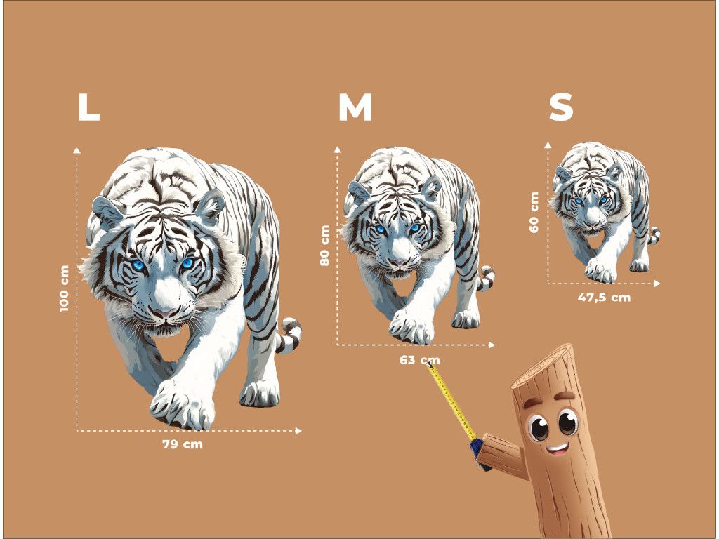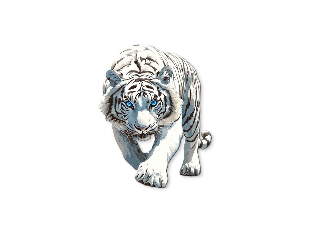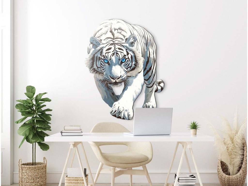 Cette élégante décoration murale représente un tigre blanc avançant d'un pas assuré, le regard bleu perçant. Ses mouvements gracieux et son expression intense dégagent une force, une concentration et une domination silencieuse – le symbole parfait du courage et de l'indomptabilité.