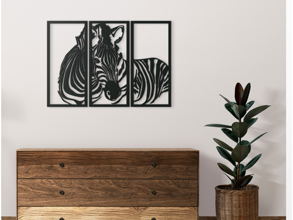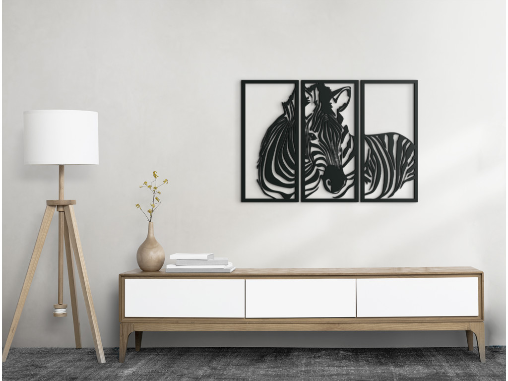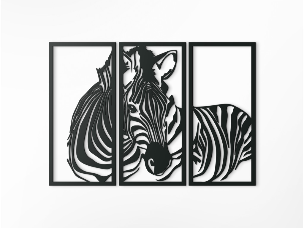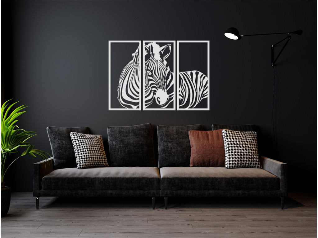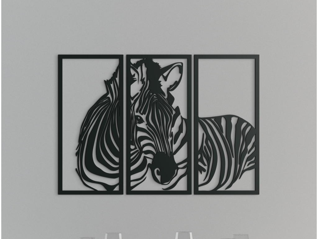 Zaujímavý trojdielny drevený obraz so zvieracou tematikou dodá nádych moderného štýlu a elegancie do moderne i tradične zariadenej miestnosti. Obraz sa skladá z 3 dielov v tvare obdĺžnika a ponúka pohľad na jedno z najzaujímavejšie sfarbených zvierat v prírode. Exotické zebrie prúžky spestria a skrášlia akýkoľvek interiér.