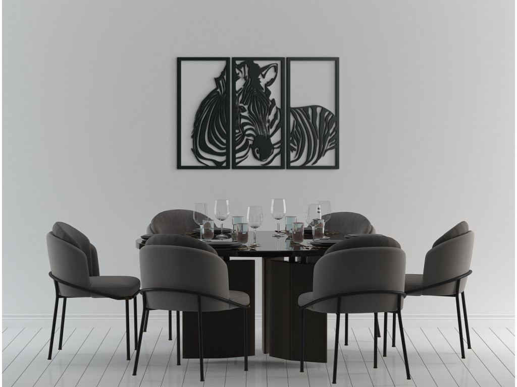 La décoration en bois Zebra en plusieurs parties se compose de plusieurs éléments qui forment un ensemble harmonieux. Elle convient pour un bureau, un salon, un couloir ou d'autres espaces et constitue également un cadeau élégant au motif original.