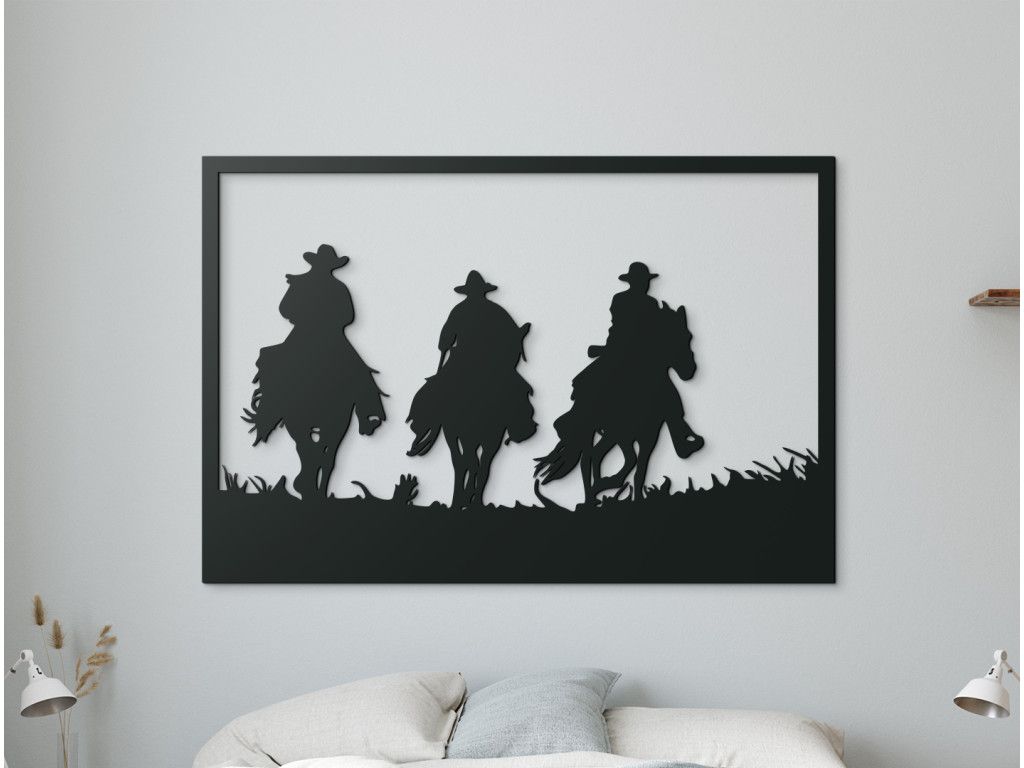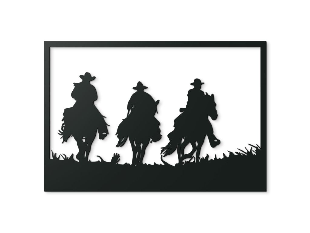 Le tableau Trois cavaliers capture l’esprit de liberté et de nature sauvage. Les silhouettes de trois hommes à cheval, coiffés de chapeaux, avançant dans une prairie, paraissent à la fois puissantes et paisibles, comme s’ils revenaient d’un long voyage. La sculpture précise met en valeur les détails des chevaux et des personnages, créant un effet 3D marqué et une impression réaliste. Vous pouvez choisir parmi plusieurs variantes de couleurs afin que le tableau s’harmonise avec l’atmosphère de votre intérieur.