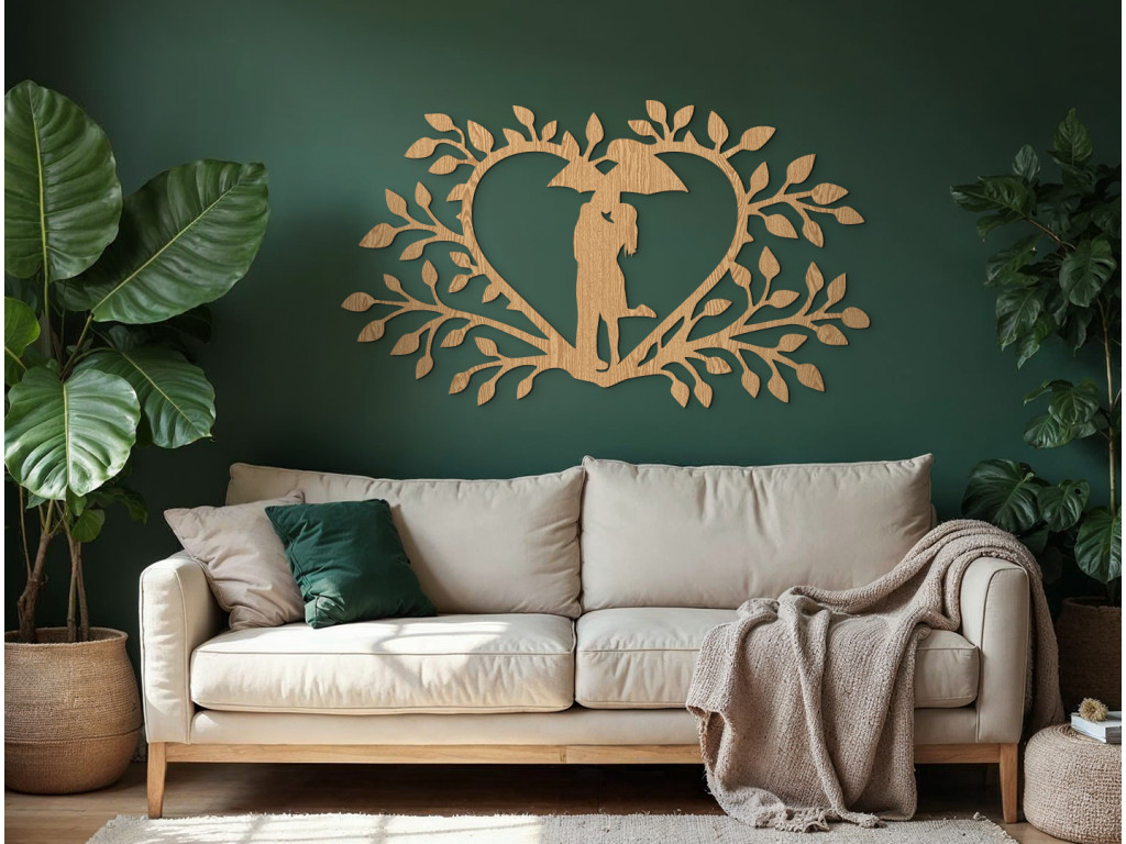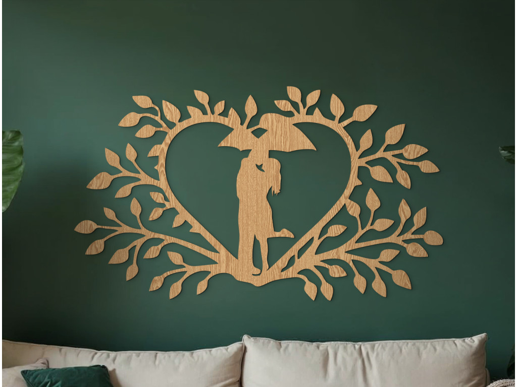 Zaľúbenci v srdci je drevená dekorácia, ktorá zosobňuje vzájomnú lásku a jednotu dvoch duší prostredníctvom symbolického dizajnu srdca a dvoch postáv pod dáždnikom. Precízne vyrezávanie a jemné detaily dodávajú dielu elegantný a nadčasový vzhľad, ktorý sa harmonicky integruje do rôznych interiérových štýlov.