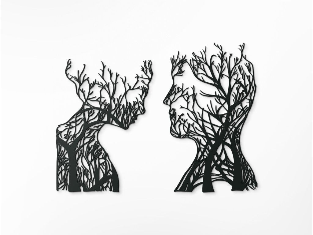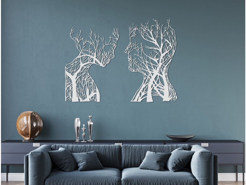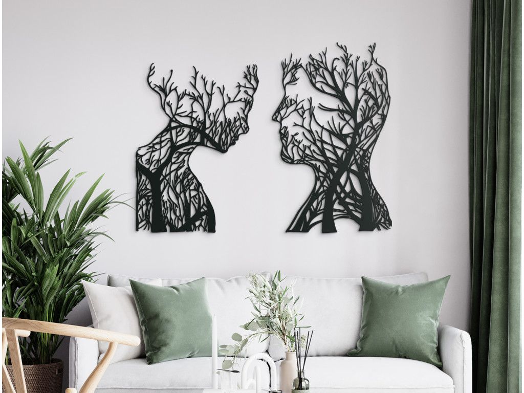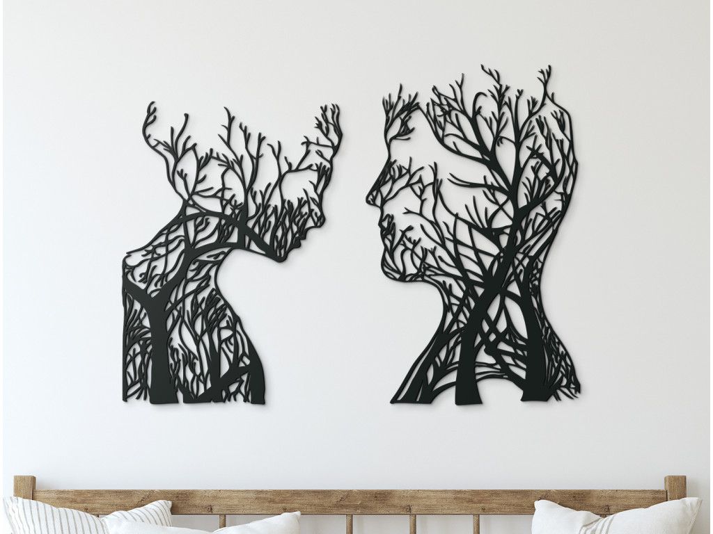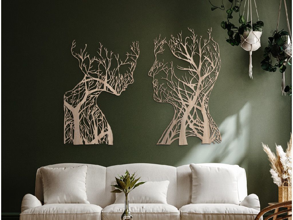 Mettez en valeur le mur de votre salon avec un nouvel autocollant en bois au thème original. Il représente un homme et une femme avec un détail intéressant : des branches d'arbres poussent en eux. La décoration convient aux petits et grands espaces.