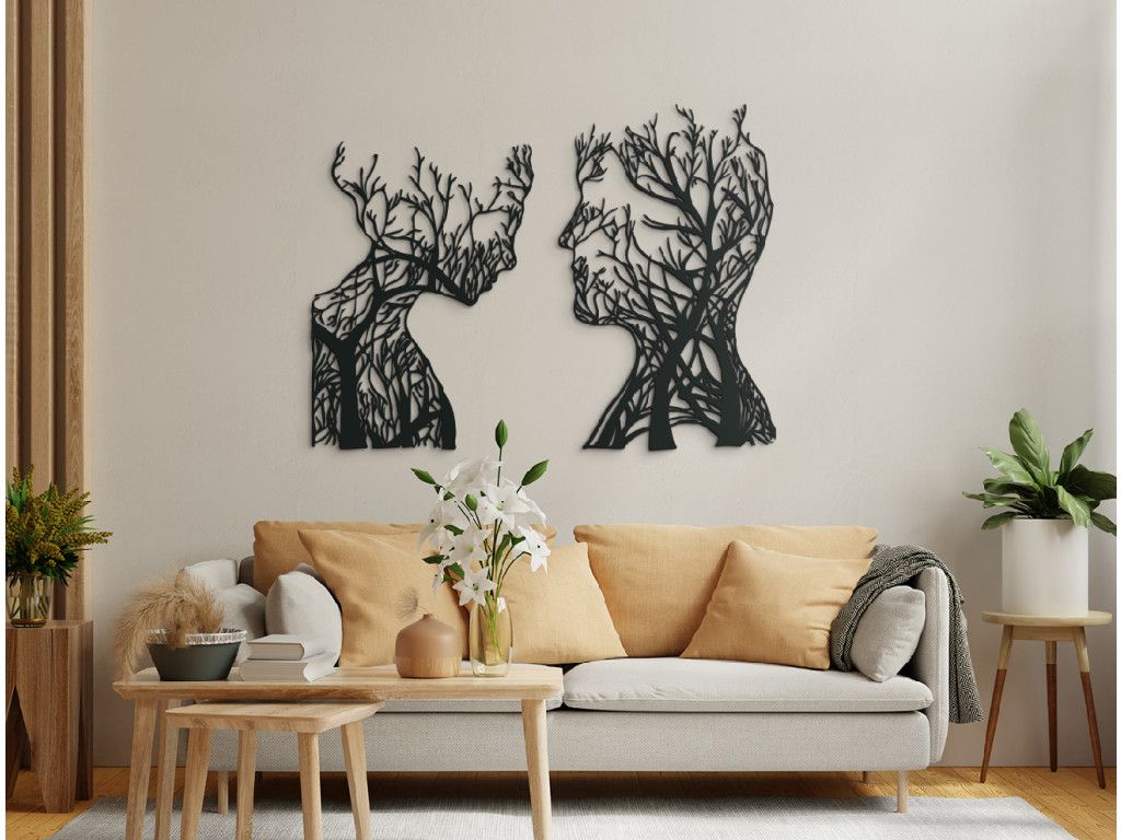 Drevený obraz vykresľujúci pohľad muža a ženy vnesie do interiéru jedinečnosť. Obraz má nádherné vypracované detaily. Tento dekor je vhodný najmä do moderných interiérov. Tento výrobok je dostupný v niekoľkých farebných variantoch.