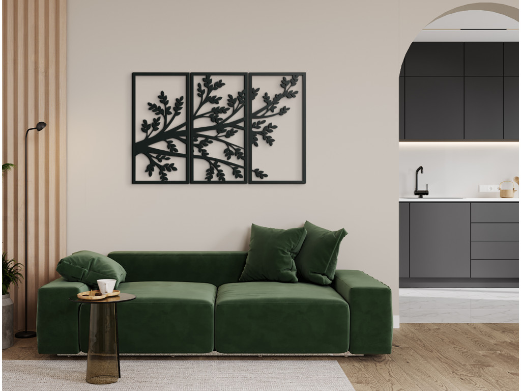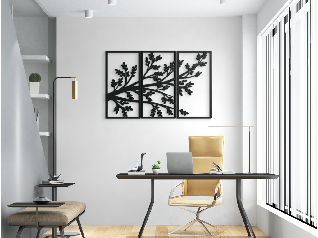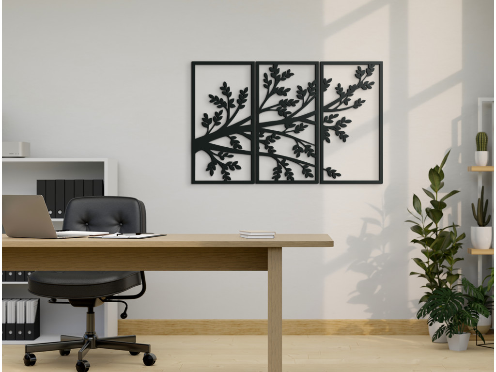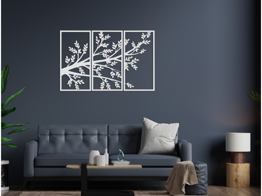 Drevený obraz Konáre stromu bude doplnkom, ktorý si všimne každá návšteva. Je vyskladaný z 3 dielov na seba nadväzujúcich. Stredný diel spolu s pravou a ľavou stranou vytvára dizajnový kúsok do všetkých miestností. Na každom z dielov sa nachádzaj kúsok z veľkého stromu. Obraz najlepšie vyznie, keď bude zavesený spolu ako jeden kus.