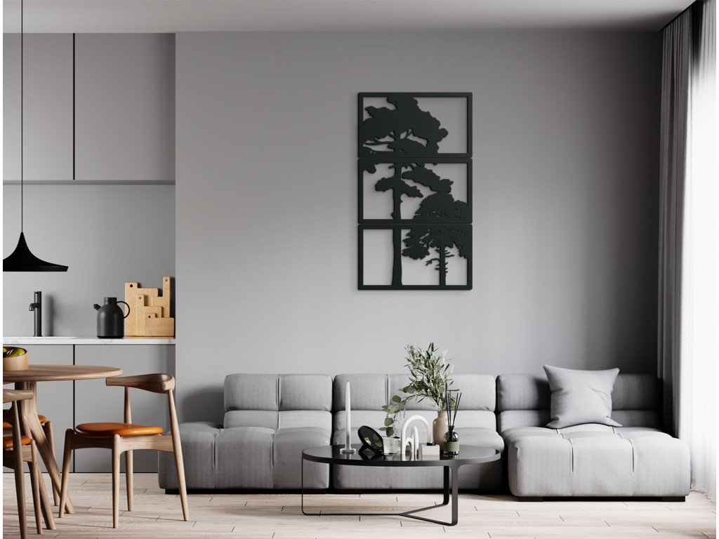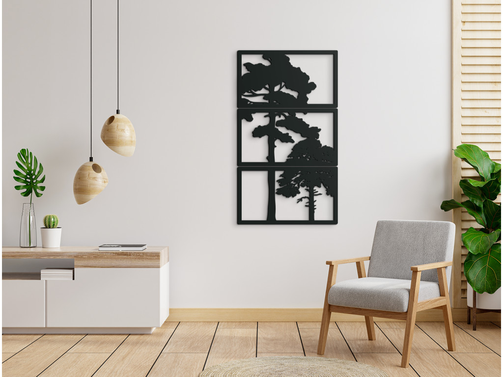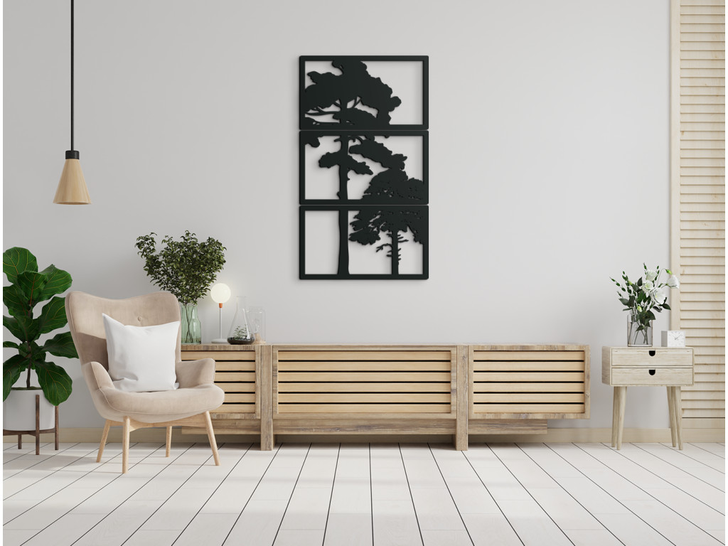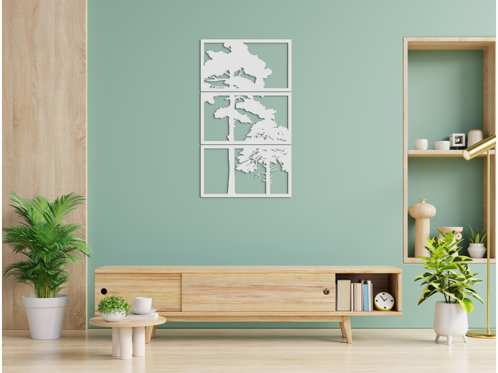 Originálny vyrezávaný obraz Stromy je výnimočný pre svoj dizajn. Je vyskladaný z 3 dielov, na rozdiel od iných obrazov tento je zložený po výške. Stredný diel spolu s vrchným a spodným dielom vytvára dizajnový kúsok do všetkých miestností.