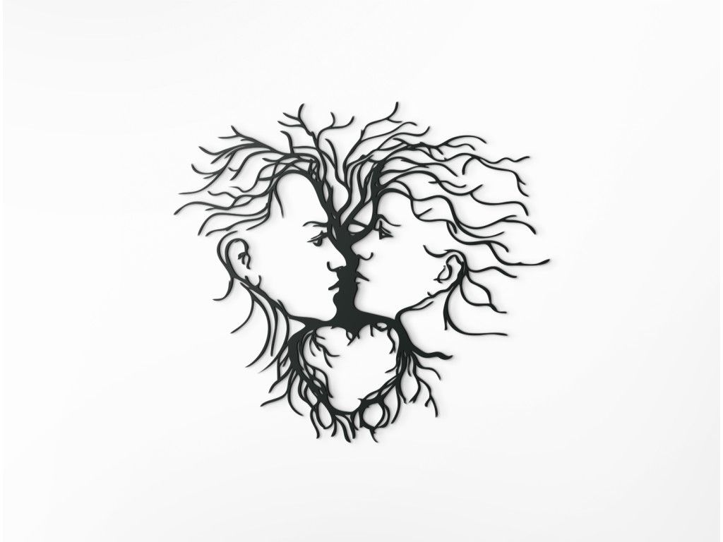 Apportez de l'élégance au mur de votre salon avec ce nouvel autocollant en bois au thème original. Il représente un homme et une femme avec un détail intéressant : des branches d'arbres poussent en eux. Cette décoration convient aux petits et grands espaces.