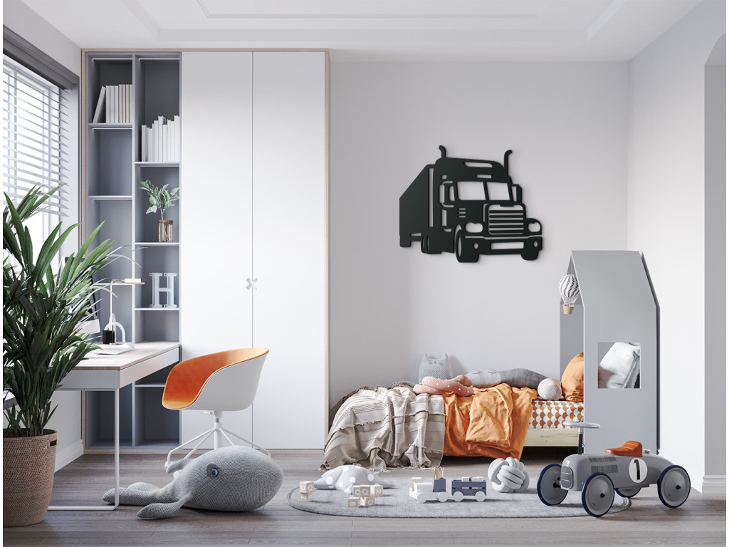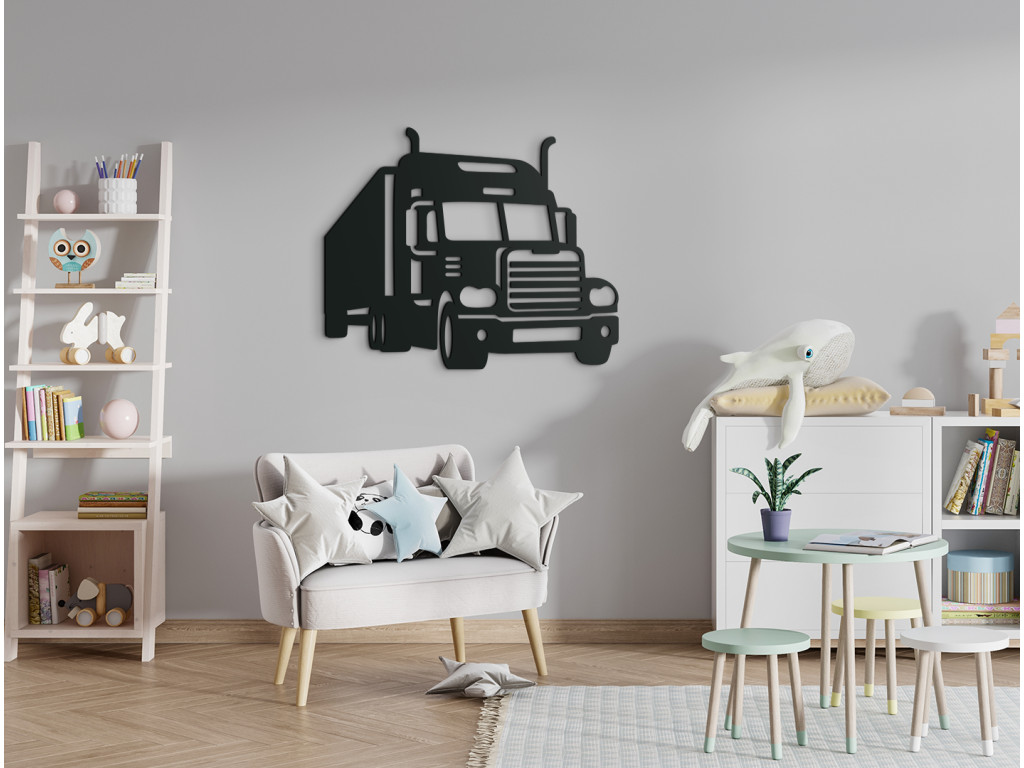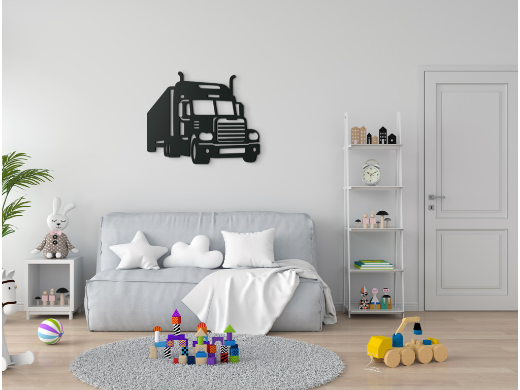 Ak máte doma dieťa, ktoré sa rado hrá s autíčkami, určite ho potešíte touto originálnou nálepkou. Pôsobivá drevená dekorácia znázorňuje tradičný dizajn amerického kamióna. Štýlové vyhotovenie bude v detskej izbe vyzerať pútavo a originálne.