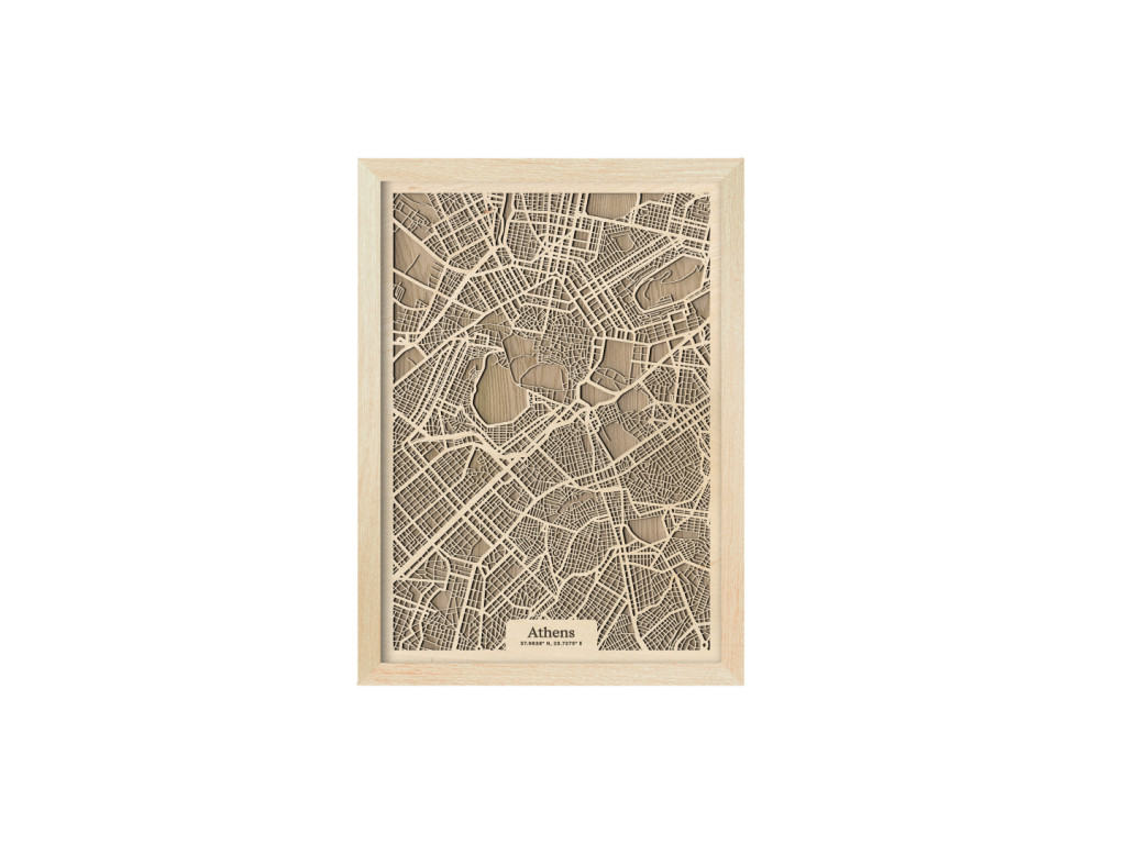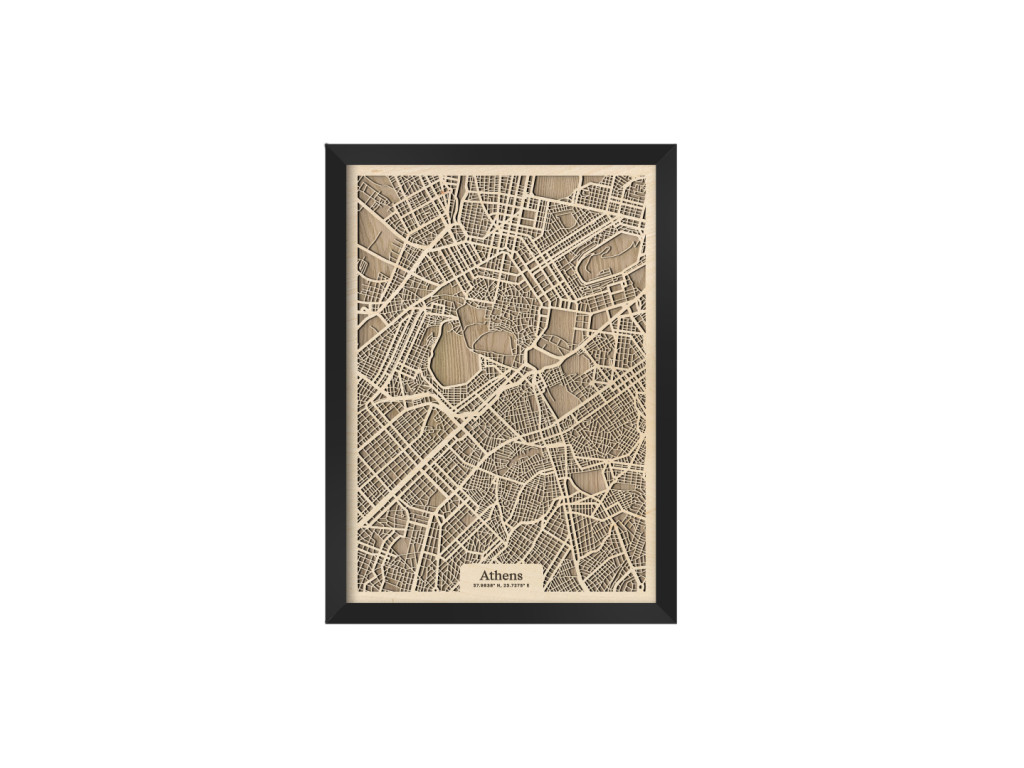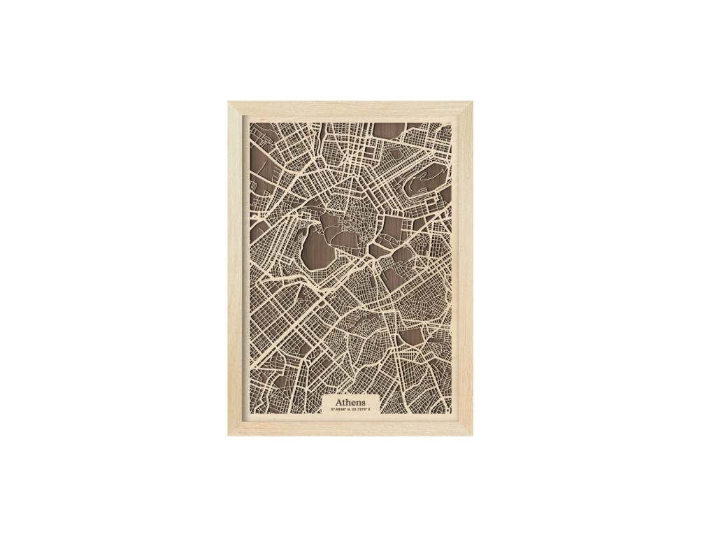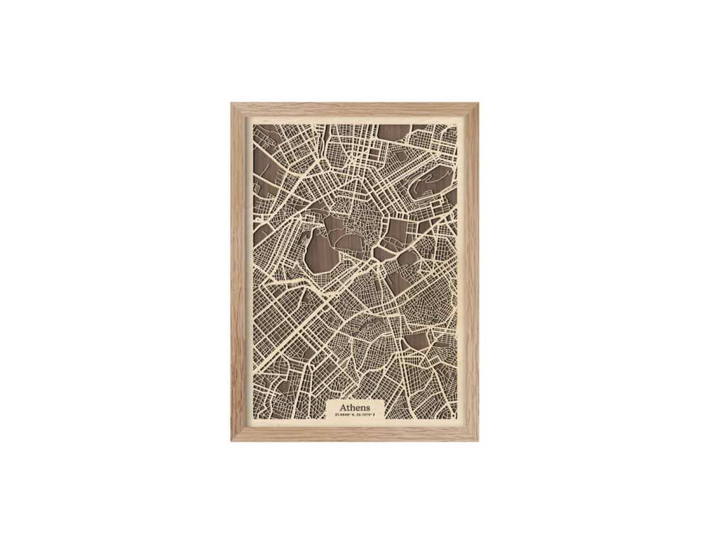 V kolekcii máp drevko CITY nesmie chýbať ani Mesto bohov a kolíska európskej civilizácie. Drevený obraz Atény rámuje centrum mesta a štvrte Plaka, Syntagma, Monastiraki, Kolonaki, Akadimia, Psirri, Thiseio, Makryanni, Acropolis, Kaukaki, ale aj široké okolie. Vedeli by ste na mape nájsť vaše obľúbené? Navyše, vďaka výberu parametrov nižšie máte možnosť vystaviť si doma obraz Atén v dizajne ušitom na mieru.