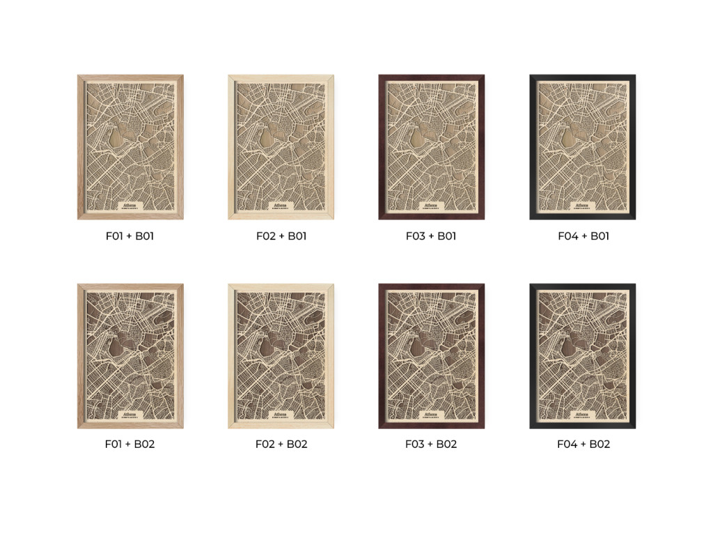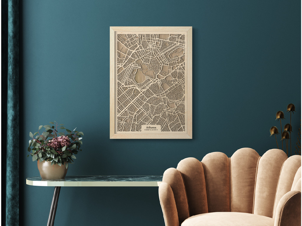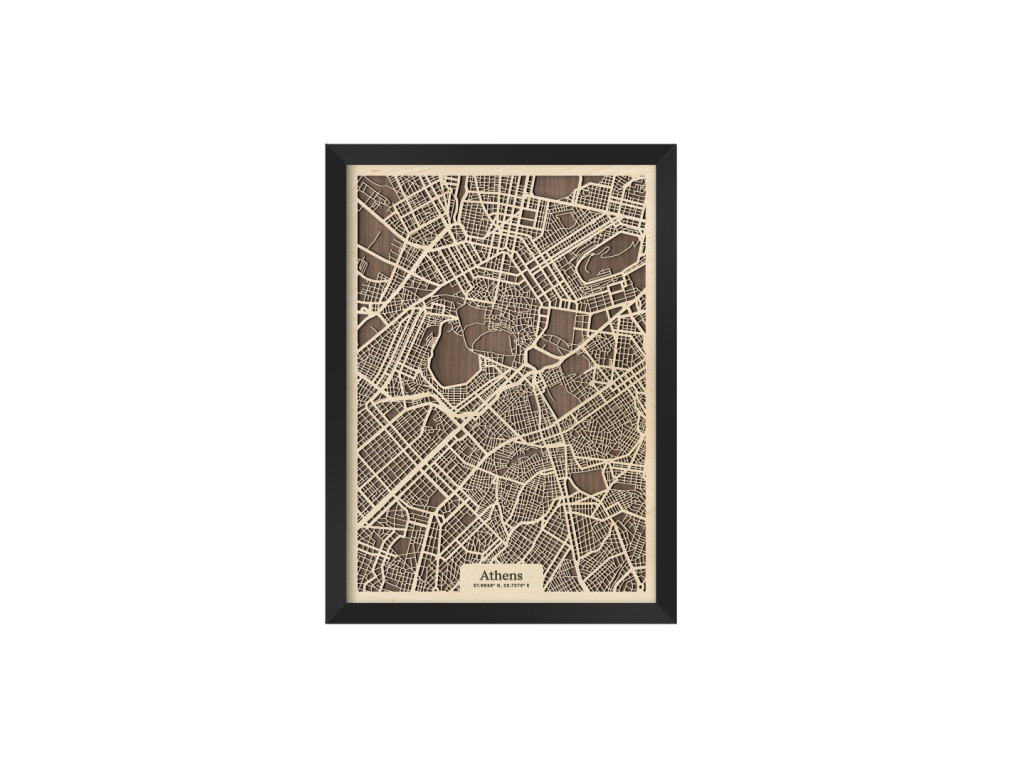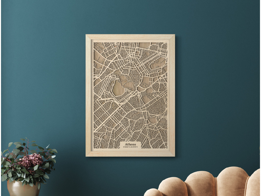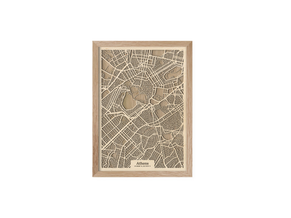 V kolekcii máp drevko CITY nesmie chýbať ani Mesto bohov a kolíska európskej civilizácie. Drevený obraz Atény rámuje centrum mesta a štvrte Plaka, Syntagma, Monastiraki, Kolonaki, Akadimia, Psirri, Thiseio, Makryanni, Acropolis, Kaukaki, ale aj široké okolie. Vedeli by ste na mape nájsť vaše obľúbené? Navyše, vďaka výberu parametrov nižšie máte možnosť vystaviť si doma obraz Atén v dizajne ušitom na mieru.