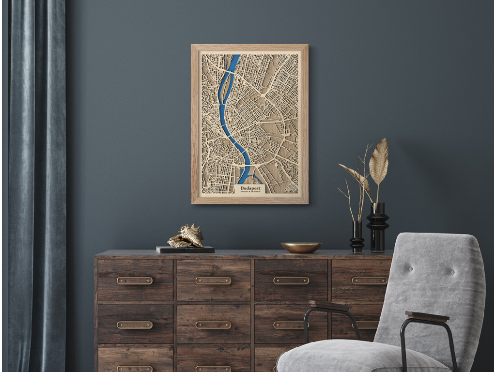Má vo vašom srdci hlavné mesto Maďarska špeciálne miesto? V rámci kolekcie drevko CITY sme sa ho rozhodli zvečniť v drevenej podobe. Metropolu tvorí až 23 obvodov, pričom drevený obraz Budapešť zachytáva tie najcentrálnejšie z nich spolu s Dunajom. Mapa s 3D efektom poteší miestnych aj návštevníkov keďže obsahuje väčšinu významných lokalít s historickými pamiatkami a turistickými atrakciami. Obraz Budapešť vám radi vyskladáme na mieru podľa farieb a rozmerov voliteľných nižšie.
