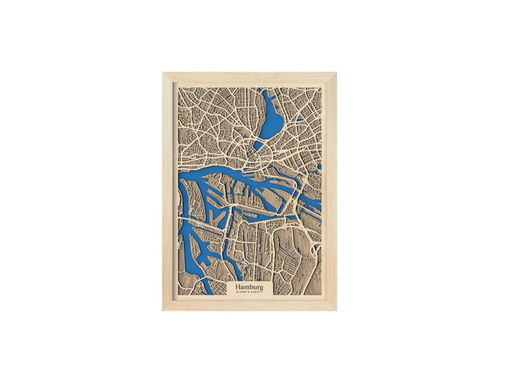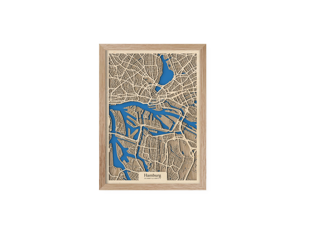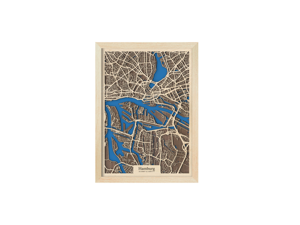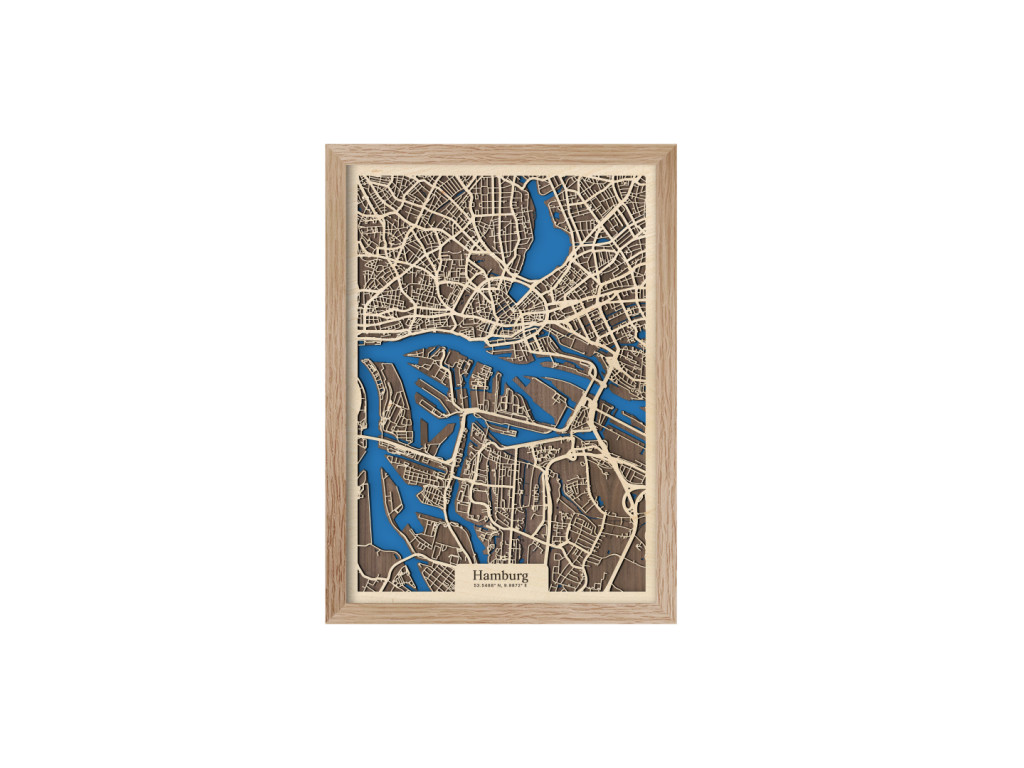 Už niekoľko európskych miest si vďaka množstvu vodných kanálov a mostov vyslúžilo prezývku Benátky severu. Druhé najväčšie mesto Nemecka k nim právom patrí. Stačí sa naň a na rieky Bille, Alster a Labe pozrieť z vtáčej perspektívy na mape Hamburgu z kolekcie drevko CITY. V ráme dostupnom v 4 farbách zachytávame časti Mitte, Nord a Eimsbüttel. Ak vám práve tieto prirástli k srdcu, drevený obraz Hamburg u vás doma dotvorí príjemnú atmosféru v prevedení podľa vlastného vkusu.