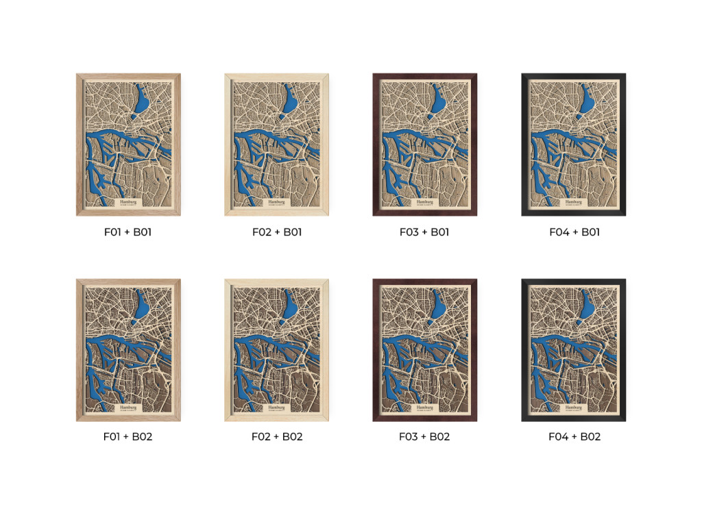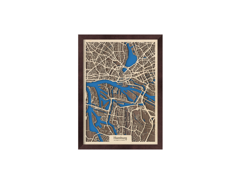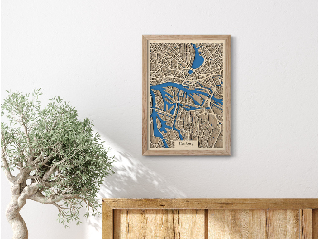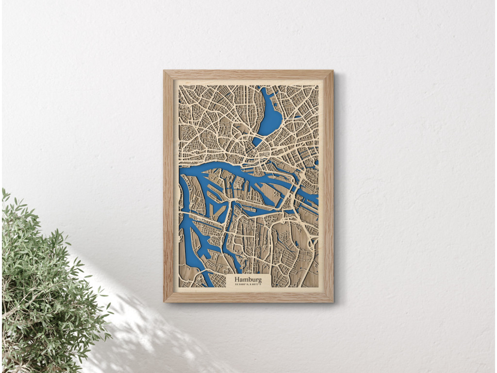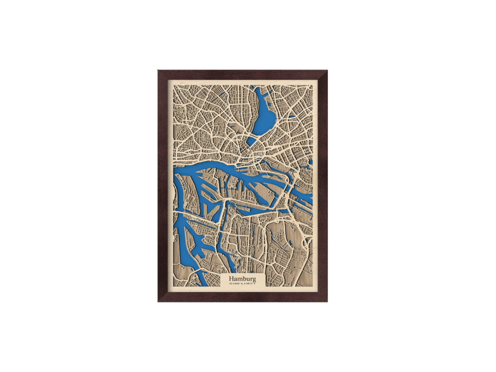 Už niekoľko európskych miest si vďaka množstvu vodných kanálov a mostov vyslúžilo prezývku Benátky severu. Druhé najväčšie mesto Nemecka k nim právom patrí. Stačí sa naň a na rieky Bille, Alster a Labe pozrieť z vtáčej perspektívy na mape Hamburgu z kolekcie drevko CITY. V ráme dostupnom v 4 farbách zachytávame časti Mitte, Nord a Eimsbüttel. Ak vám práve tieto prirástli k srdcu, drevený obraz Hamburg u vás doma dotvorí príjemnú atmosféru v prevedení podľa vlastného vkusu.