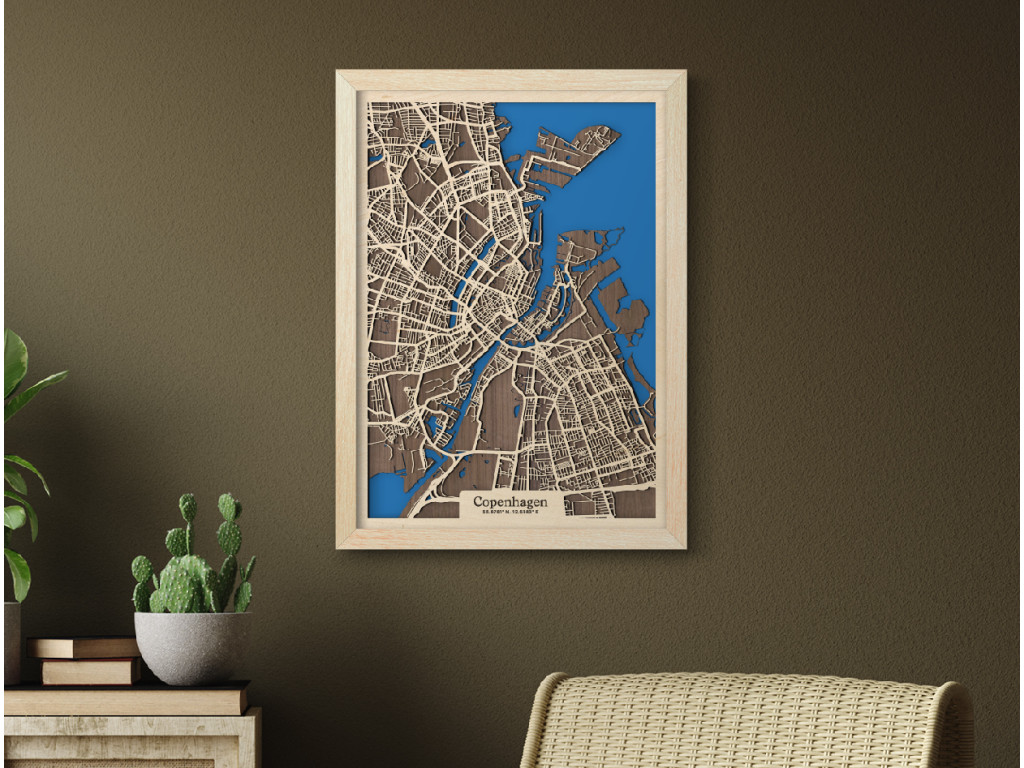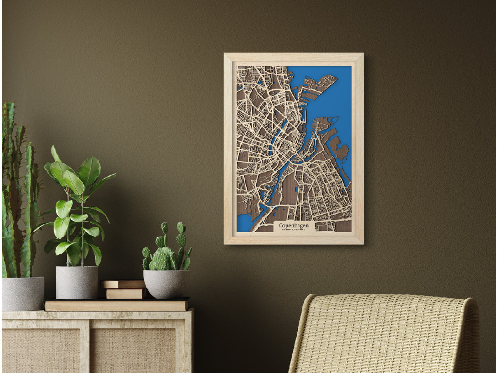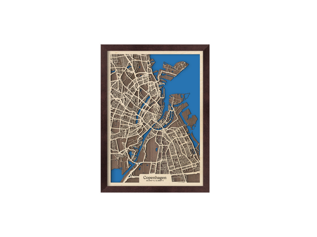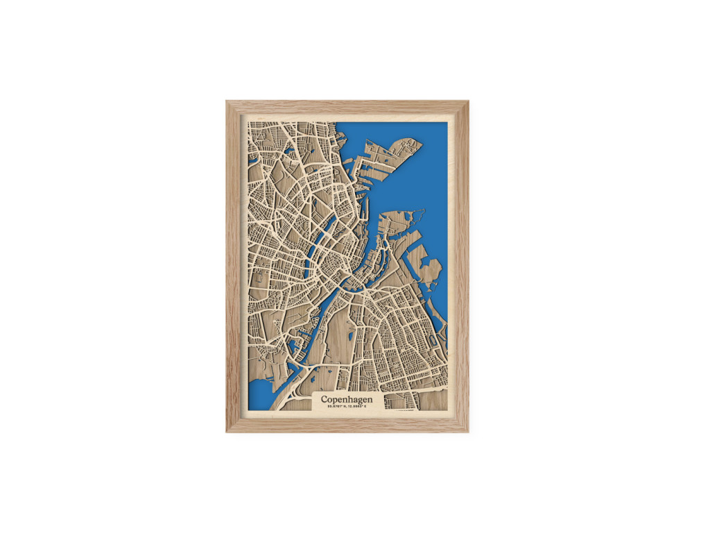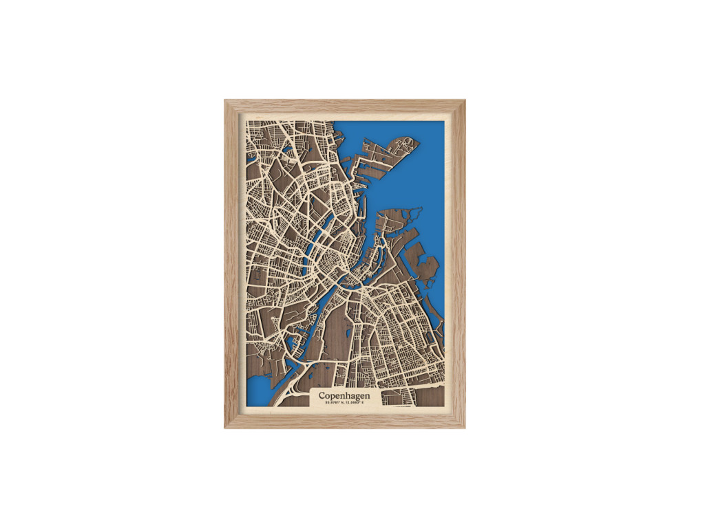 Východ Dánskeho kráľovstva a našu kolekciu drevko CITY zdobí malebná Kodaň. København leží na ostrovoch Sjælland a Amager, vďaka čomu je prezývaná aj Benátky severu. Ak chcete svojmu interiéru vdýchnuť kúsok škandinávskeho dizajnu, drevená mapa Kodane je na to ako stvorená. Zachytáva centrum a časti Kastrup, Amager Vest, Amager Øst, Vesterbro, Indre By, Nørrebro, Østerbro či Nordhavn. Obraz Kodaň vám tak doma zaručene dotvorí správne severské hygge vo vami vybranej veľkosti a farbe.