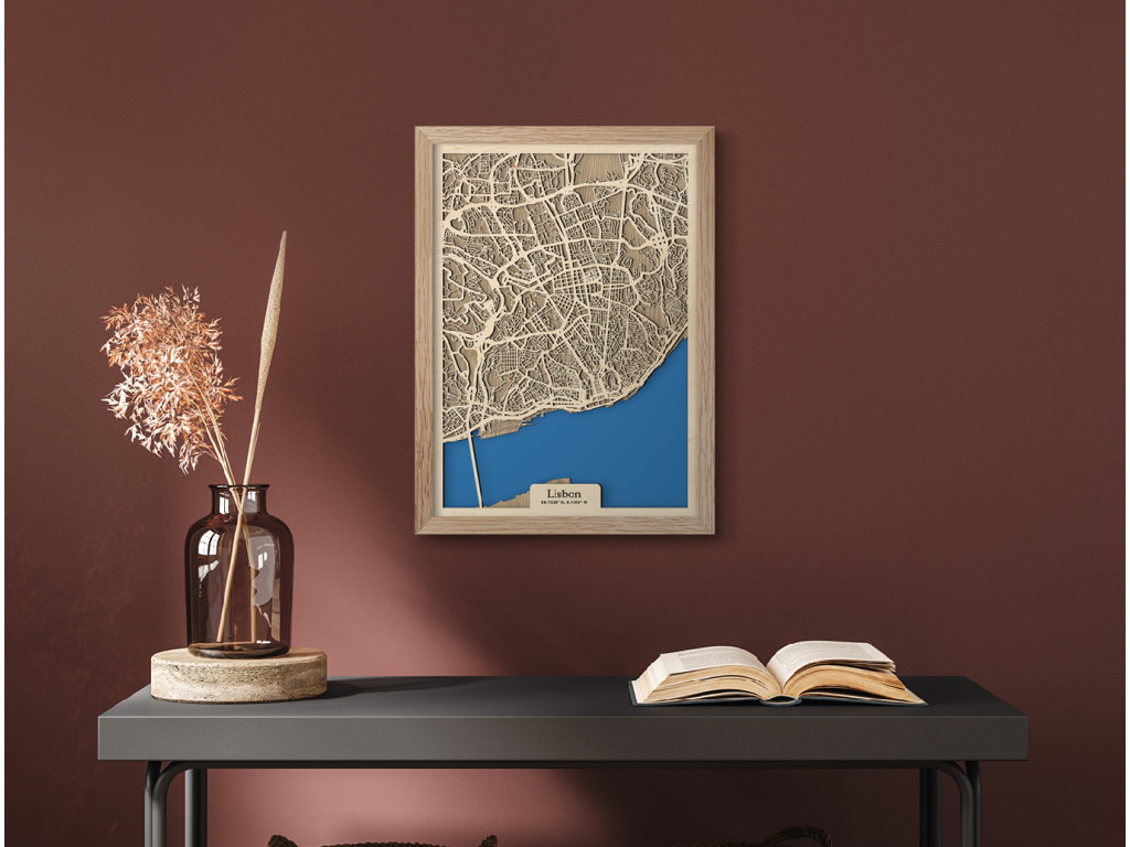 Sú vám dôverne známe ulice hlavného mesta Portugalska a jedného z najstarších miest na svete? Drevený obraz Lisabon sme navrhli tak, aby zachytil čo najviac zo 4 štvrtí centra v kolekcii drevko CITY. Od pôvodnej historickej Alfama, Baixa, Bairro Alto až po Campo Grande a São João de Brito. Pozornosť sme venovali aj detailom prístavu a mostu Ponte 25 de Abril, ktorý vedie ponad rieku Tejo. Navyše, 3D mapu Lisabonu farebne aj veľkostne prispôsobíme vášmu vkusu.