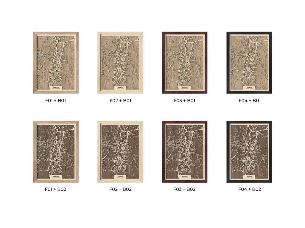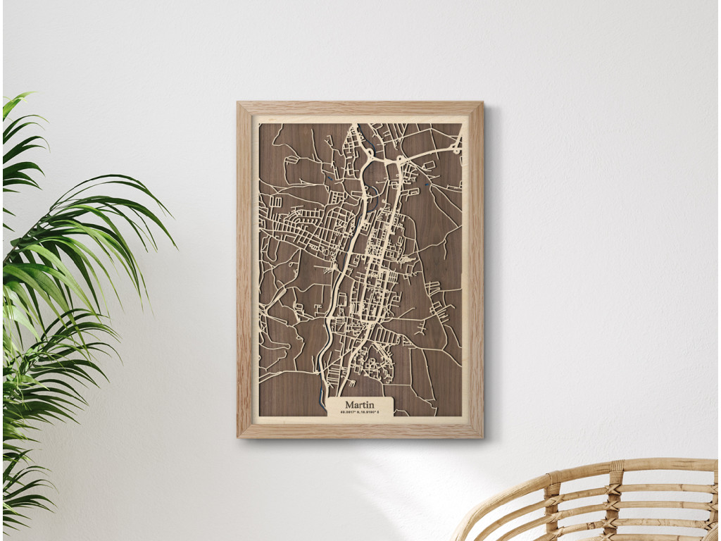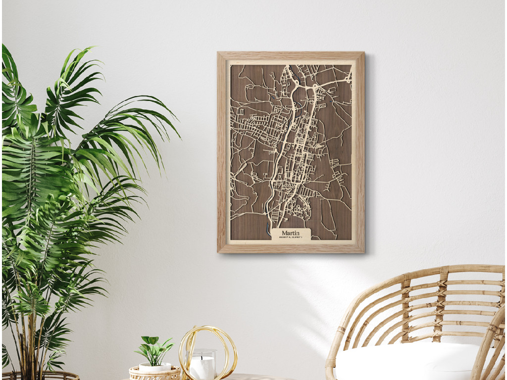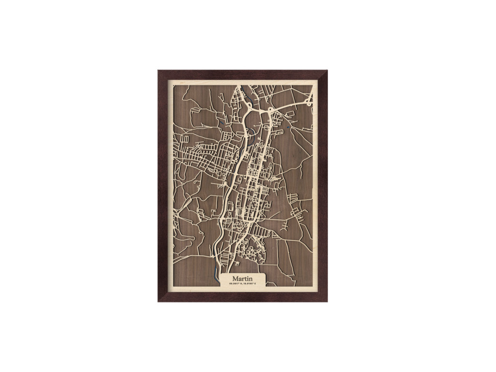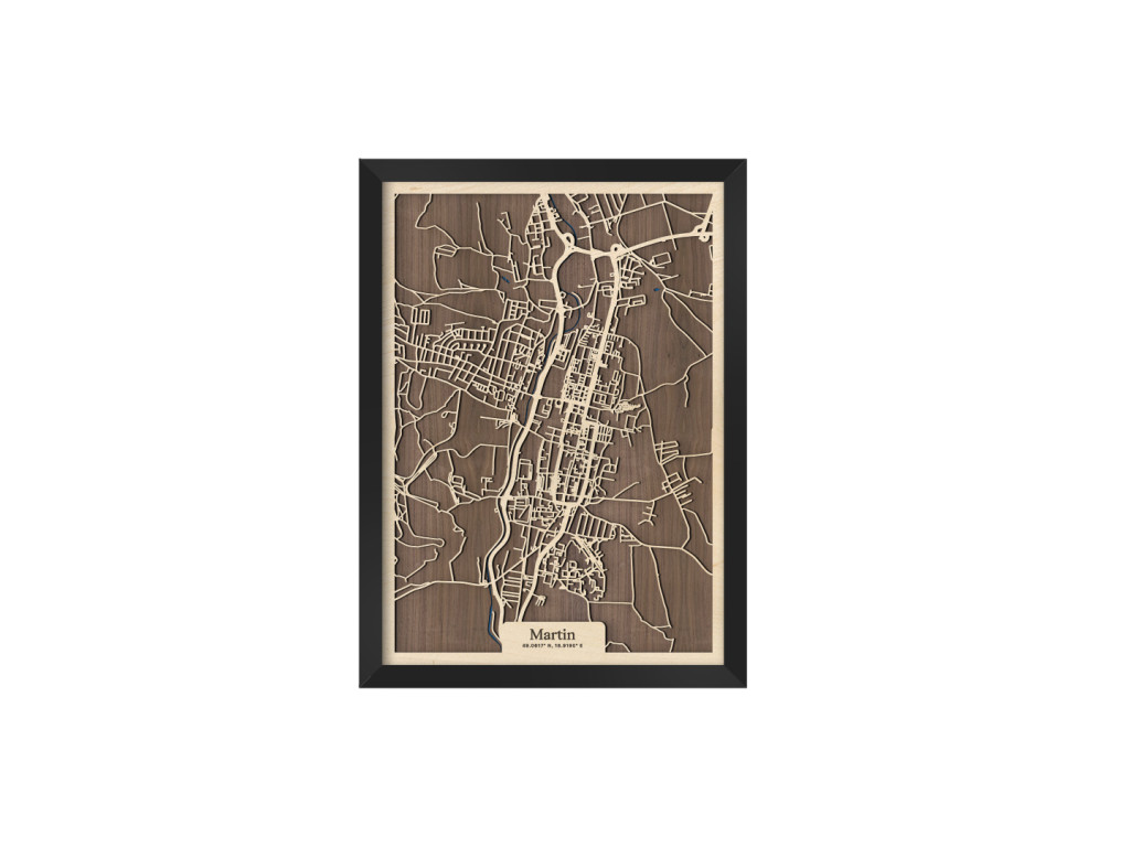 Nečudo, že vám historické centrum Turca na severe Slovenska prirástlo k srdcu. Drevený obraz Martin sme zaradili do kolekcie drevko CITY nielen pre rodákov, ale aj návštevníkov. Tí miestni však určite spoznajú časti Priekopa, Záturčie, Košúty, Ľadoveň, Jahodníky, Tomčany, Stred, Sever či Podháj-Stráne. Hlavný ťah na mape lemuje modrá rieka Turiec presne tak ako v skutočnosti. Cesty a ulice Martina pre vás zvečníme vo farbách a rozmere podľa vašich predstáv.