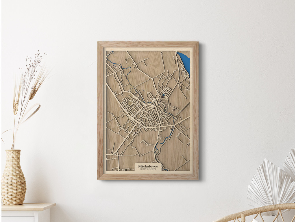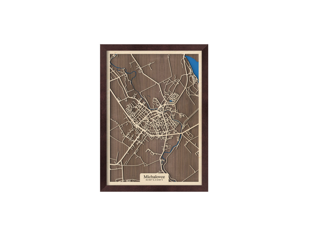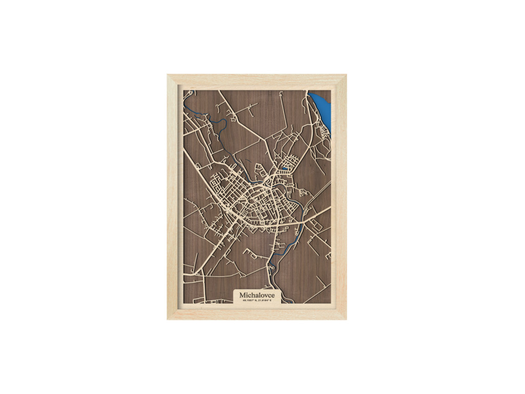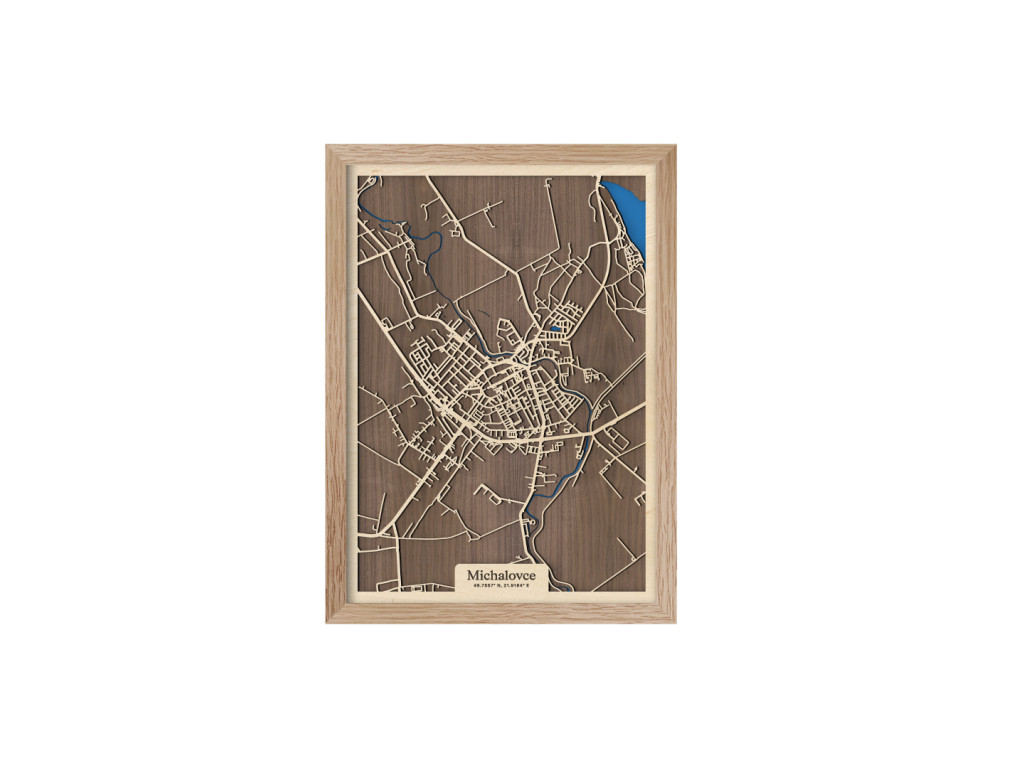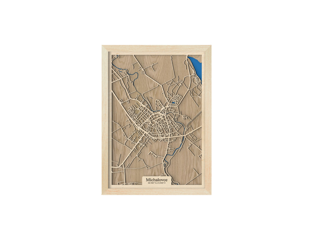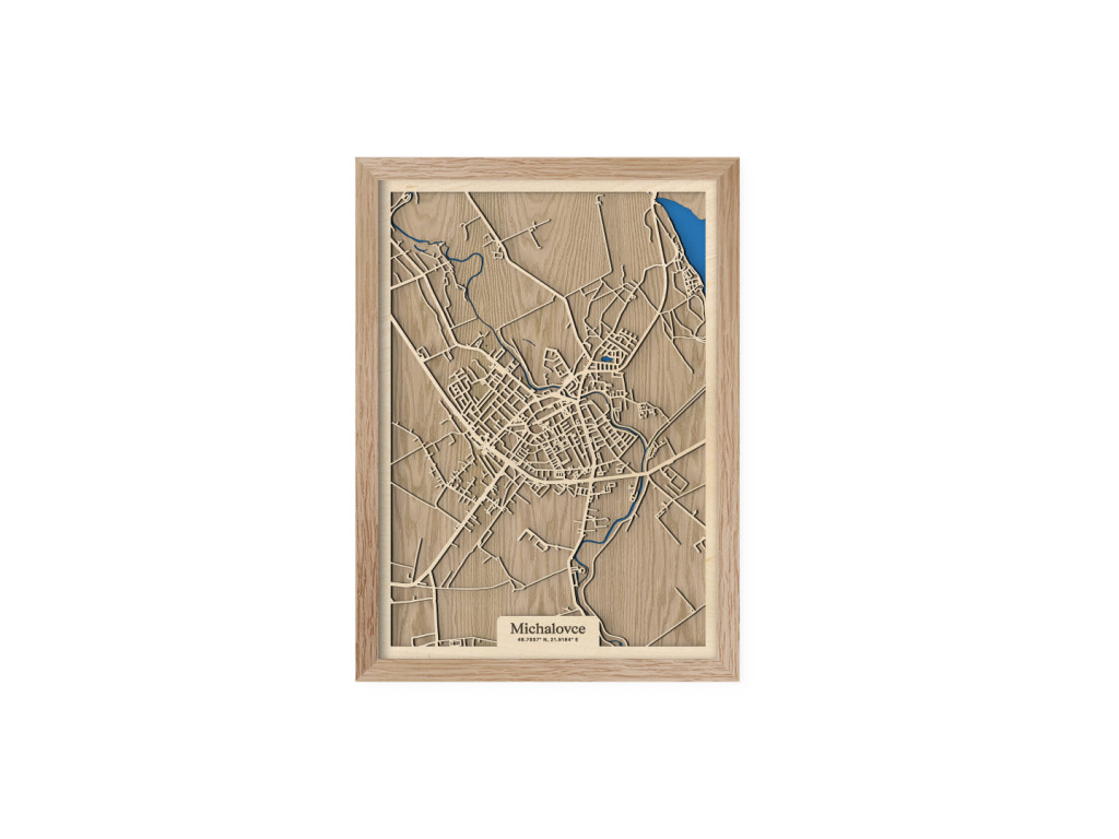 Tak schválne, ako rýchlo sa viete zorientovať v uliciach srdca Zemplína? Drevený obraz Michalovce dopĺňa kolekciu drevko CITY o 15. najväčšie mesto Slovenska. Zachytáva centrálne časti, ale aj Stráňany, Žabany, Topoľany, Milovanú, Močarany, Betlenovce, Meďov a Vrbovec. Modrá plocha v rohu reprezentuje vodnú nádrž Zemplínska Šírava. Medzi cestami sa však kľukatí aj rieka Laborec a Stráňanský rybník. Mapu Michaloviec vám radi vyskladáme na mieru podľa farieb a rozmerov voliteľných nižšie.