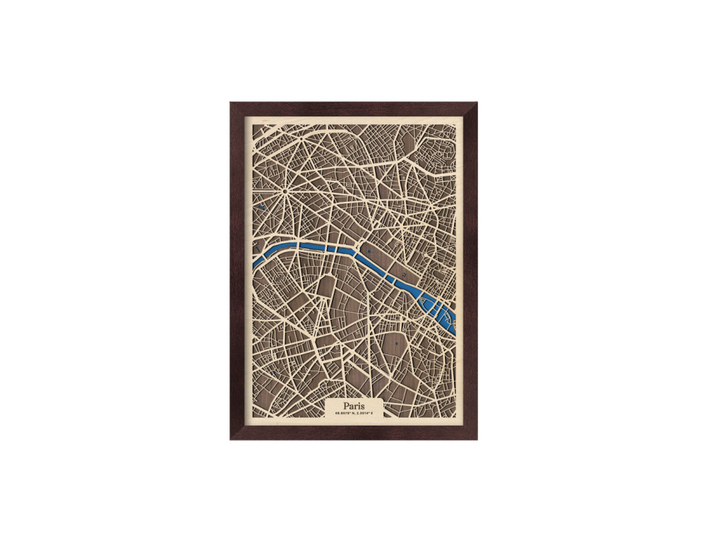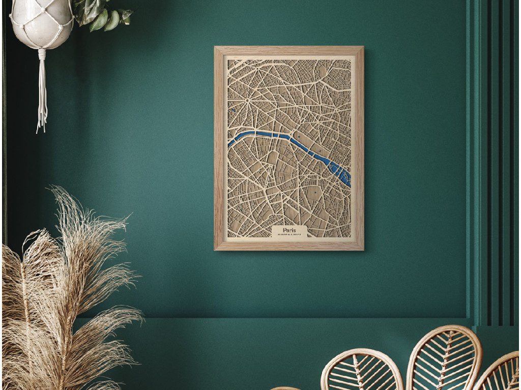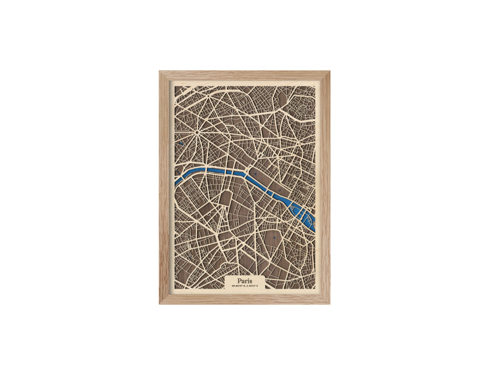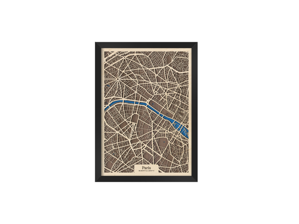 Très magnifique! Tak pôsobí mapa Paríža z kolekcie drevko CITY, ktorá vystavuje na obdiv ulice hlavného mesta Francúzska. V drevenom ráme nájdete všetky centrálne obvody od hornej štvrte Pigalle, Montmartre a kruhového objazdu pri Arc de Tromphe cez Champs-Élysées, námestie Place de la Concorde, modrú rieku Seinu so slávnymi mostami, komplex Les Invalides, Eiffelovu vežu až po Luxemburské záhrady, Panthéon a katedrálu Notre-Dame. Navyše, Mesto lásky pre vás zarámujeme do farieb podľa vlastných predstáv.