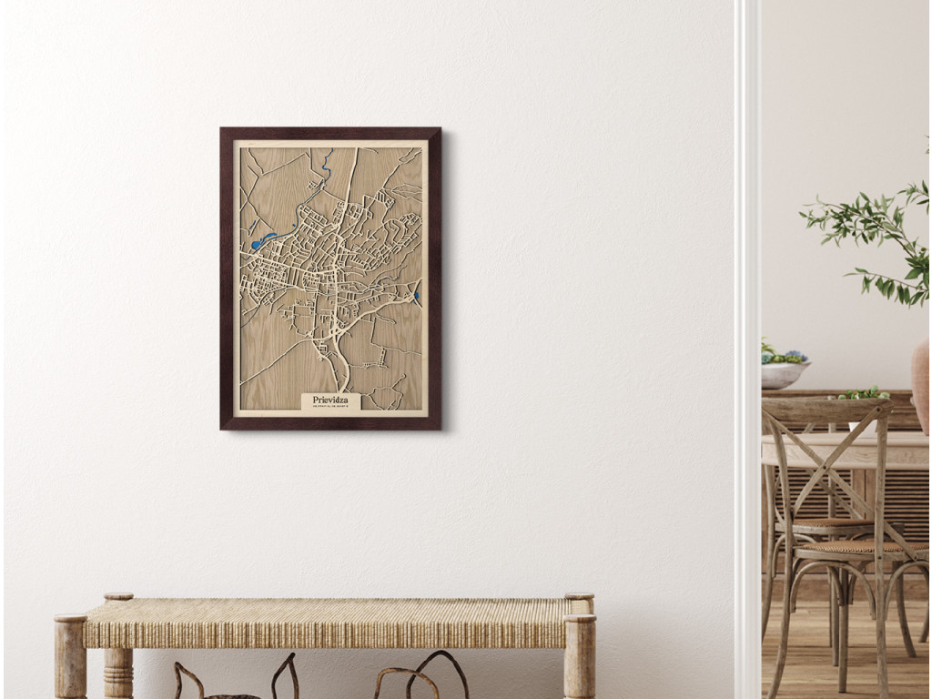 Či už Prievidza v minulosti bola alebo práve je vašim domovom, jej ulice môžu zdobiť vašu stenu kdekoľvek. Zachytáva drevená 3D mapa Prievidze všetky najznámejšie časti? Nájdete medzi nimi Staré mesto, Nové Mesto, Hradec, Kopanice, Necpaly, Kúty, Píly a Priemyselný obvod. Modrou farbou je znázornená rieka Nitra. Obraz 11. najväčšieho mesta Slovenska patrí do kolekcie drevko CITY. Stačí si ho vybrať v dizajne podľa svojho štýlu.