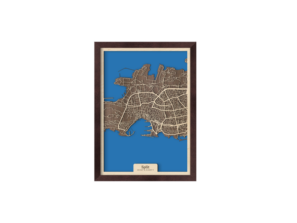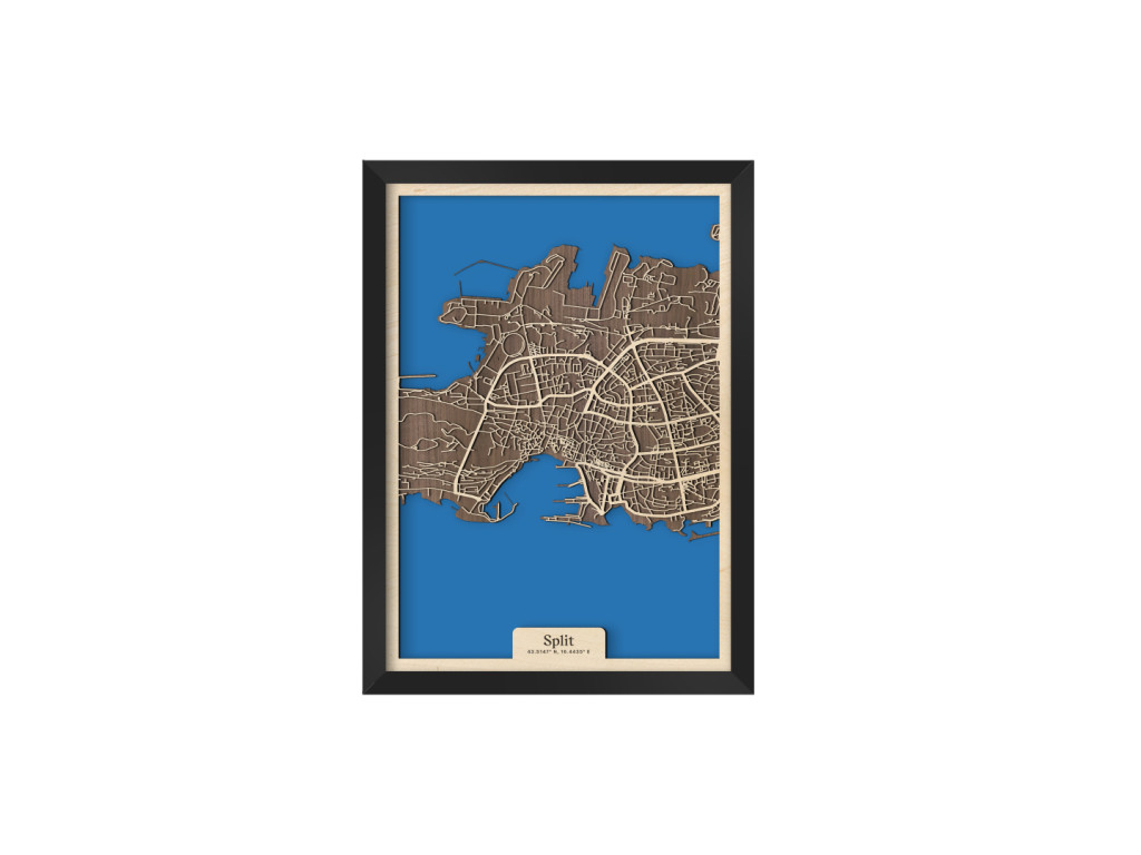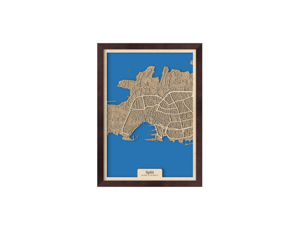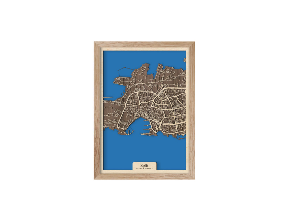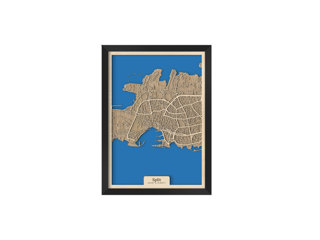 Sú vám dôverne známe ulice prístavného mesta Dalmácie a zároveň najväčšieho mesta chorvátskeho pobrežia? Drevený obraz Split sme navrhli tak, aby na mape z kolekcie drevko CITY zachytil tie najkrajšie časti z polostrova. Od Meje, Varoš, Spinut cez Lovret, Grad, Bol až po Brda a Bačvice. Split, rovnako ako našu mapu s 3D efektom, obklopuje Jadranské more. Dovolenkovú atsmosféru si tak budete môcť pohľadom naň pripomínať každý deň. Navyše, obraz zarámujeme na mieru podľa vami zvolenej farby a veľkosti.