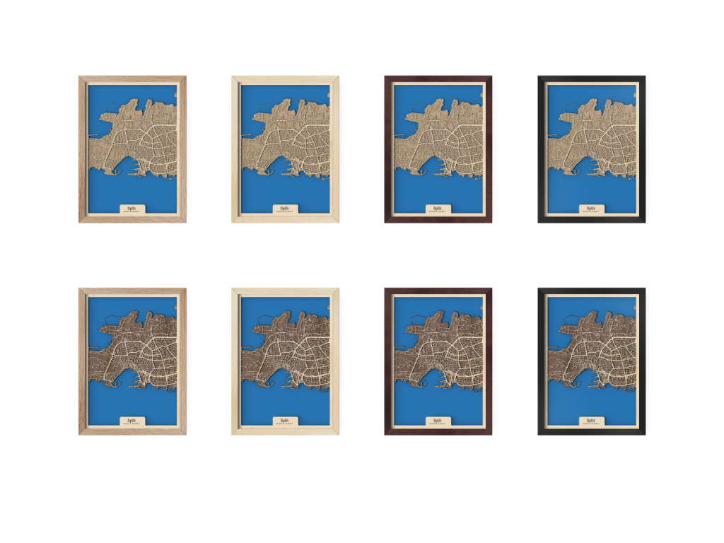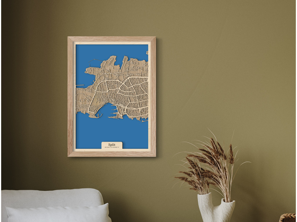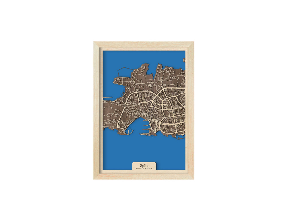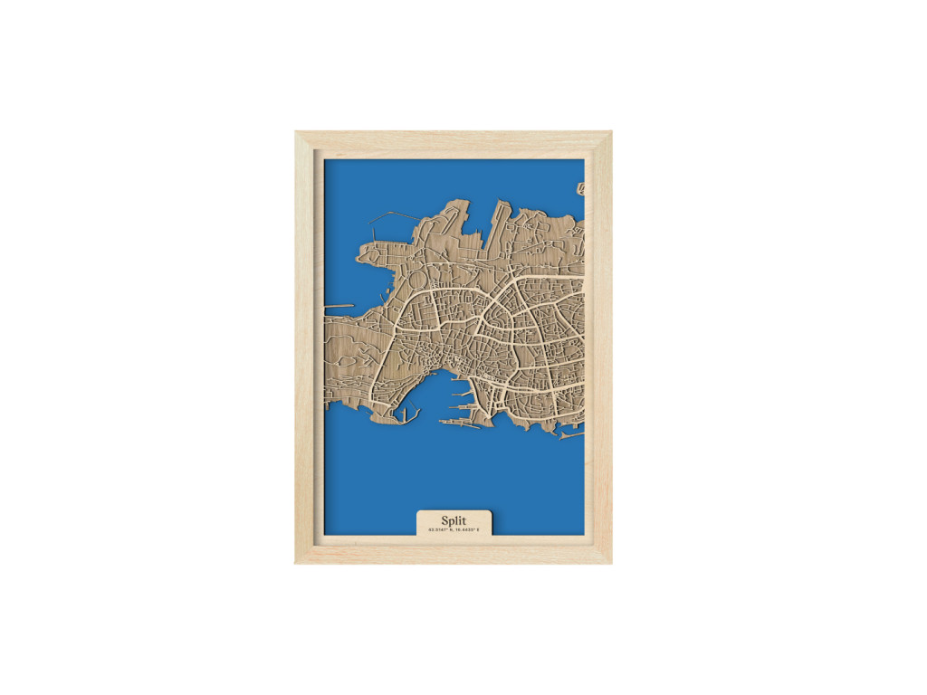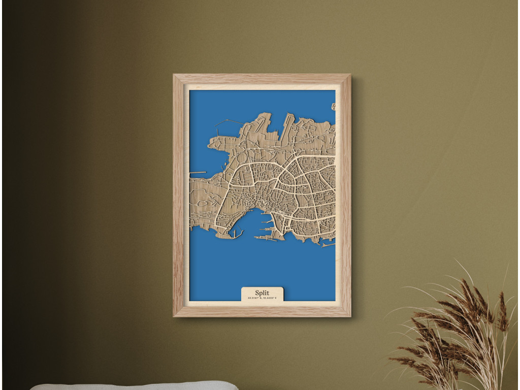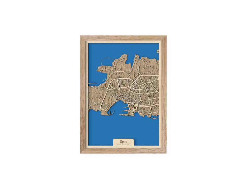 Sú vám dôverne známe ulice prístavného mesta Dalmácie a zároveň najväčšieho mesta chorvátskeho pobrežia? Drevený obraz Split sme navrhli tak, aby na mape z kolekcie drevko CITY zachytil tie najkrajšie časti z polostrova. Od Meje, Varoš, Spinut cez Lovret, Grad, Bol až po Brda a Bačvice. Split, rovnako ako našu mapu s 3D efektom, obklopuje Jadranské more. Dovolenkovú atsmosféru si tak budete môcť pohľadom naň pripomínať každý deň. Navyše, obraz zarámujeme na mieru podľa vami zvolenej farby a veľkosti.
