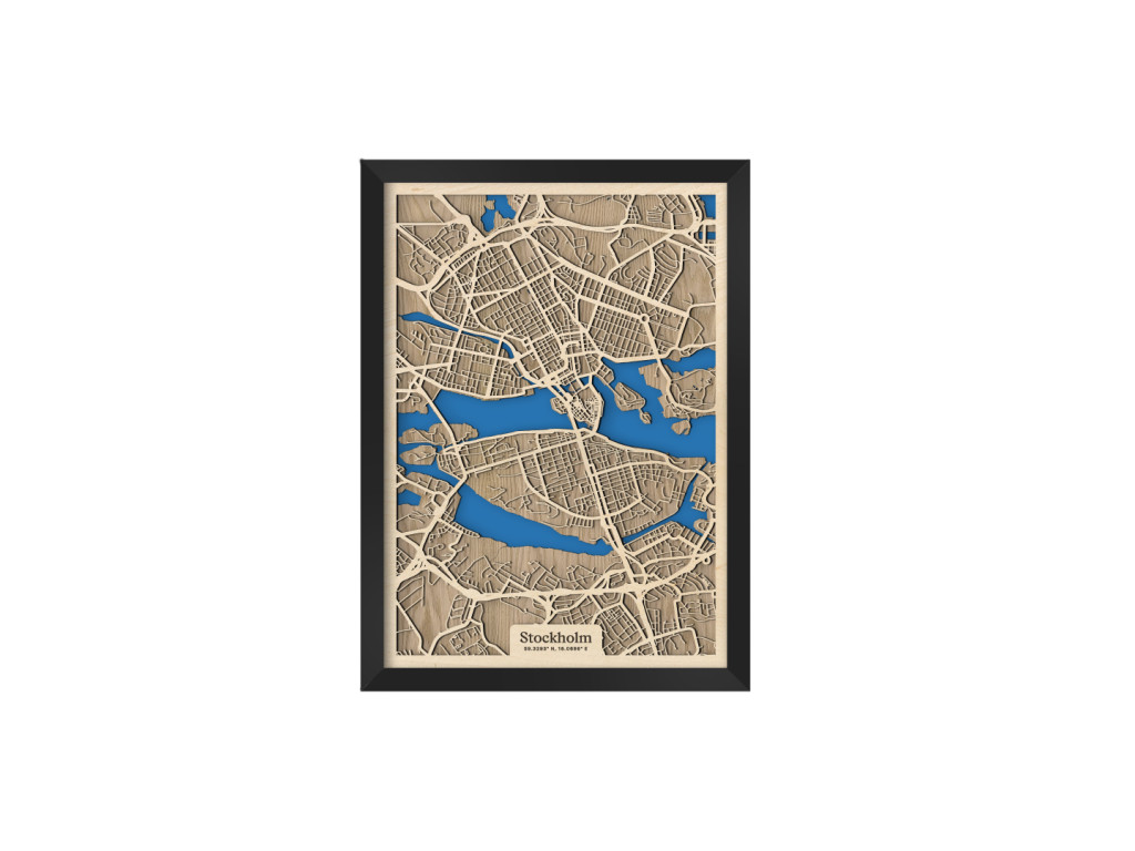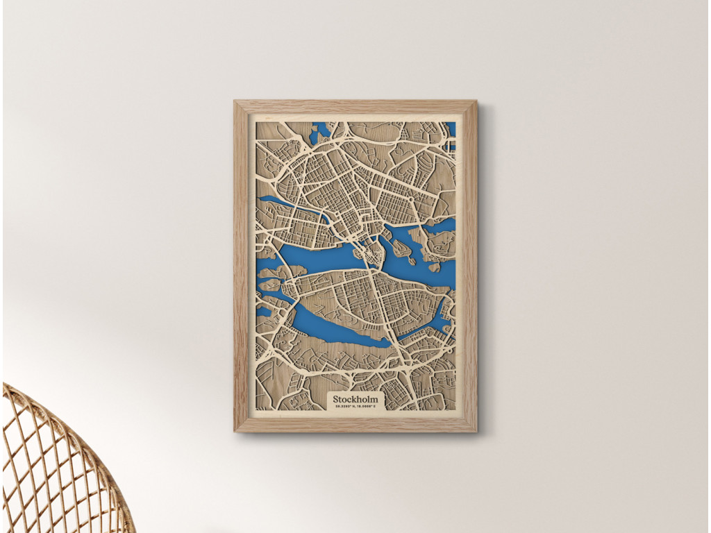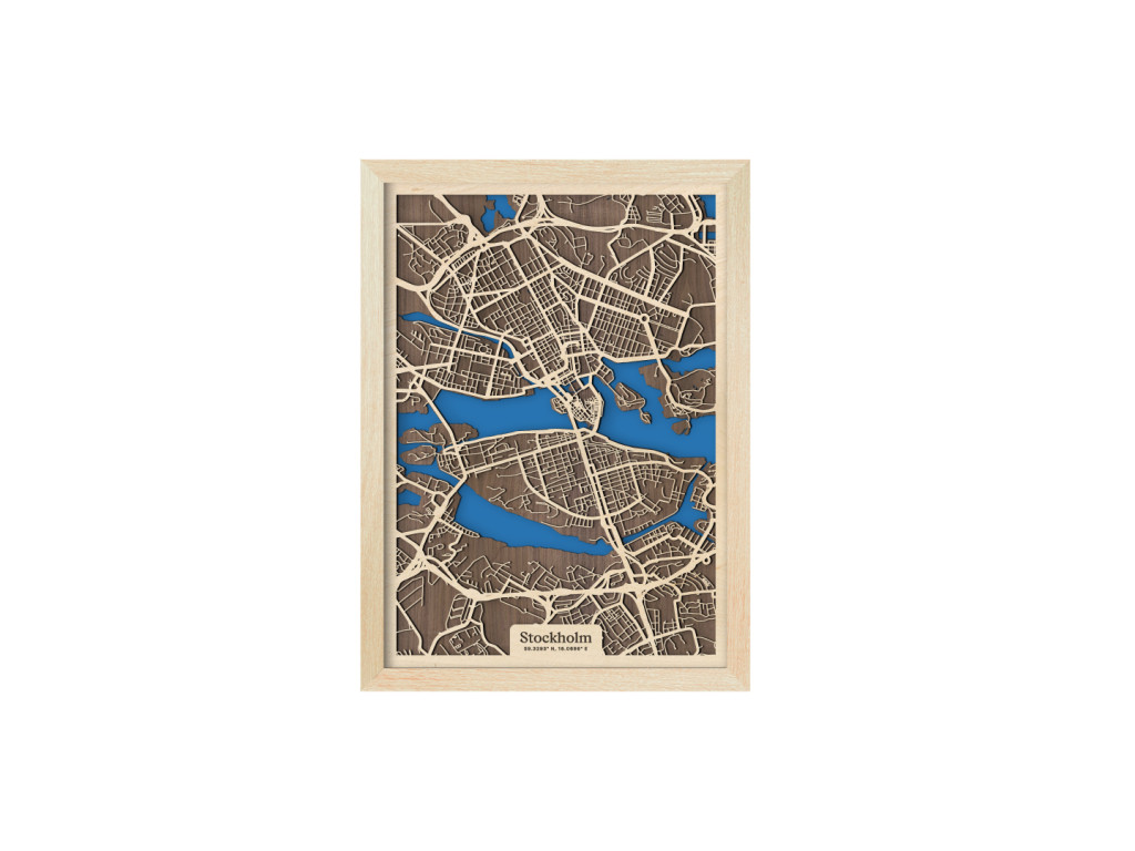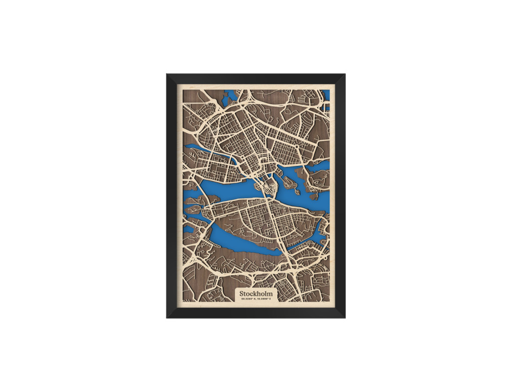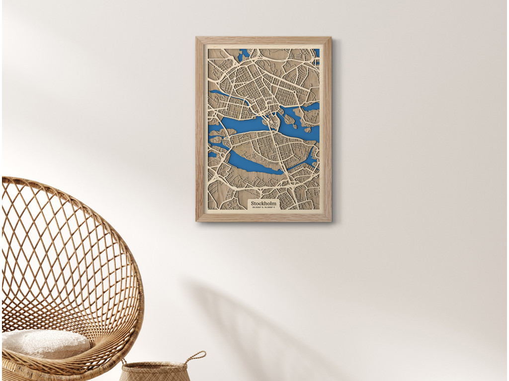 Benátky severu či srdce Škandinávie. Nečudo, že hlavné mesto Švédska si vyslúžilo práve takéto prezývky. Leží na desiatkach ostrovov na jazere Mälaren pospájaných mostami. Drevená mapa Štokholm zachytáva centrum v kolekcii drevko CITY z vtáčej perspektívy. Spoznáte tu štvrte Vasastaden, Norrmalm, Östermalm, Kungsholmen, Gamla Stan, Södermalm či Årsta? S radosťou vám ich zarámujeme vo veľkosti a farbách na mieru. Obraz Štokholm si stačí ľubovoľne vyskladať podľa parametrov nižšie.