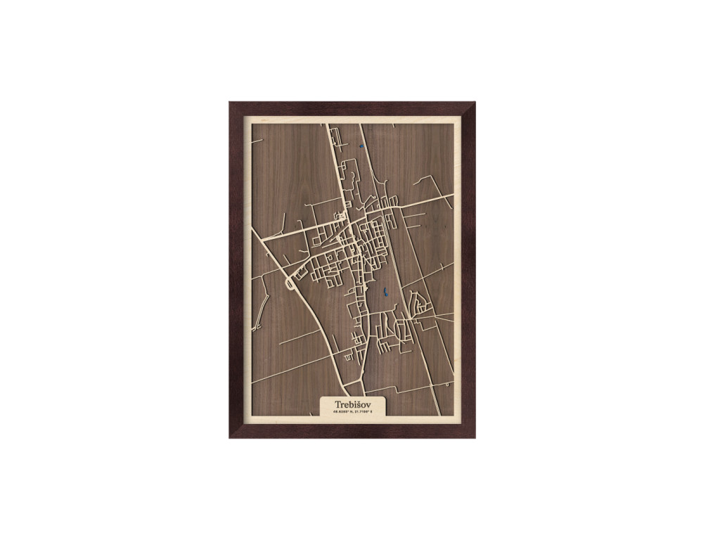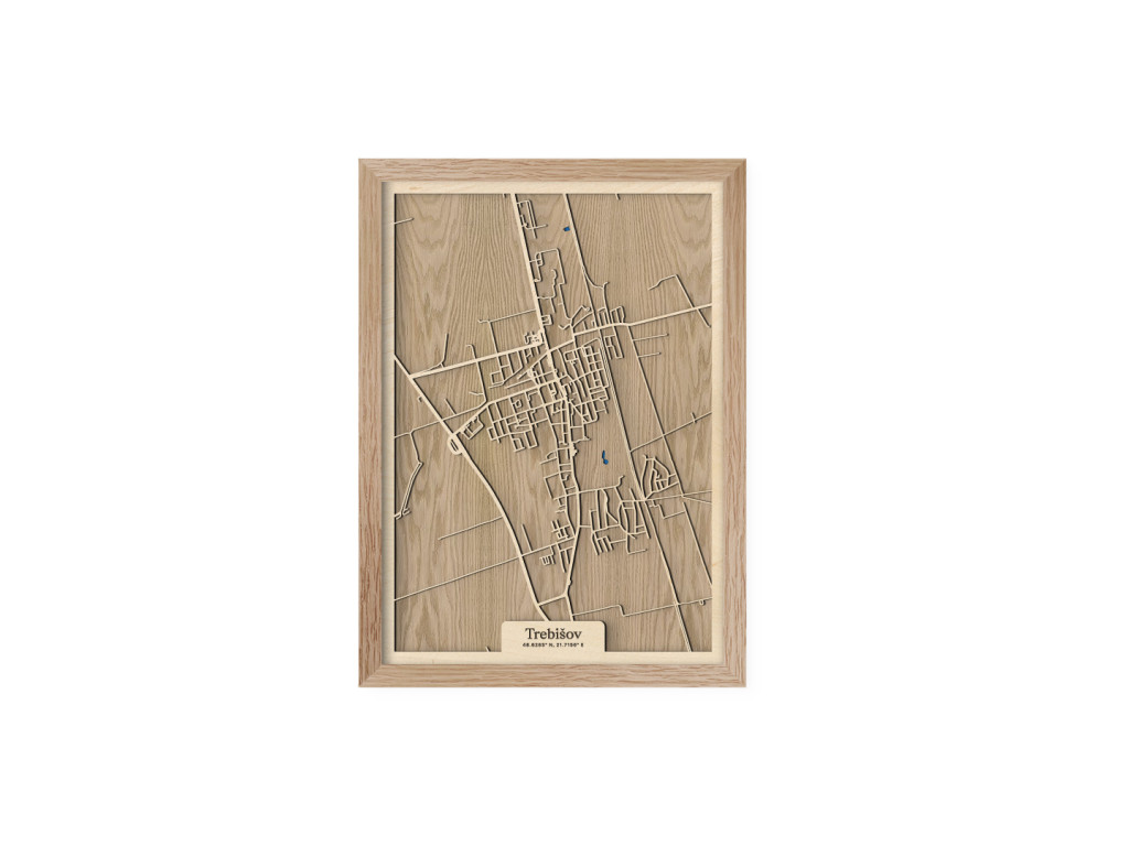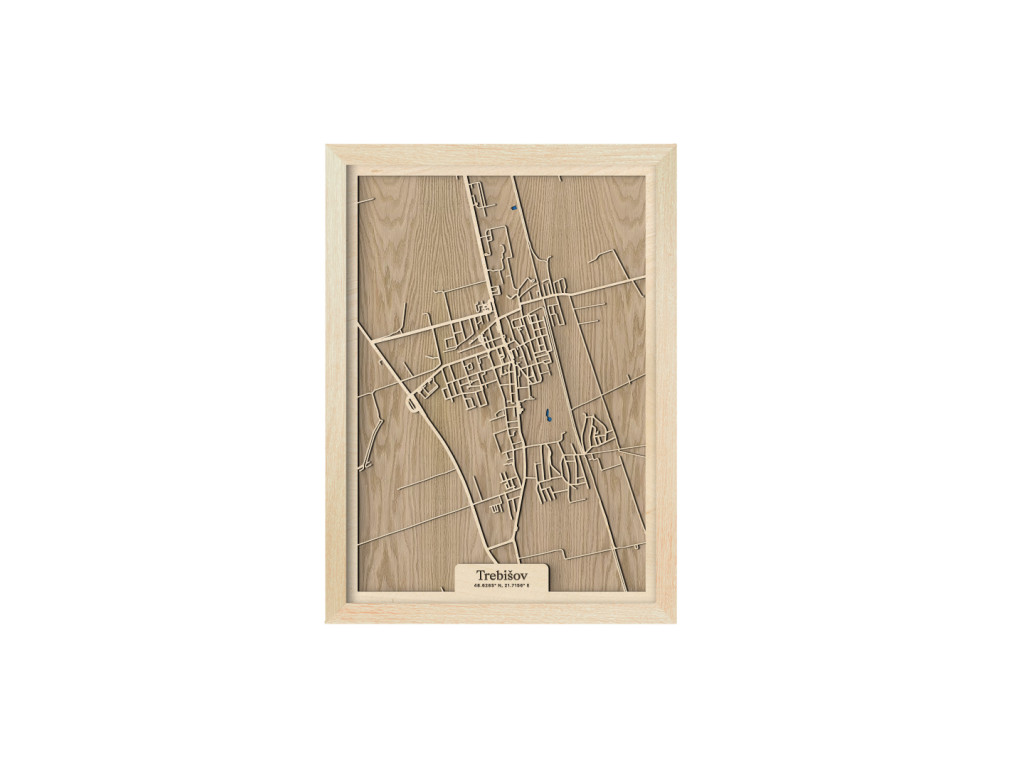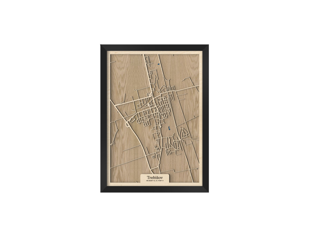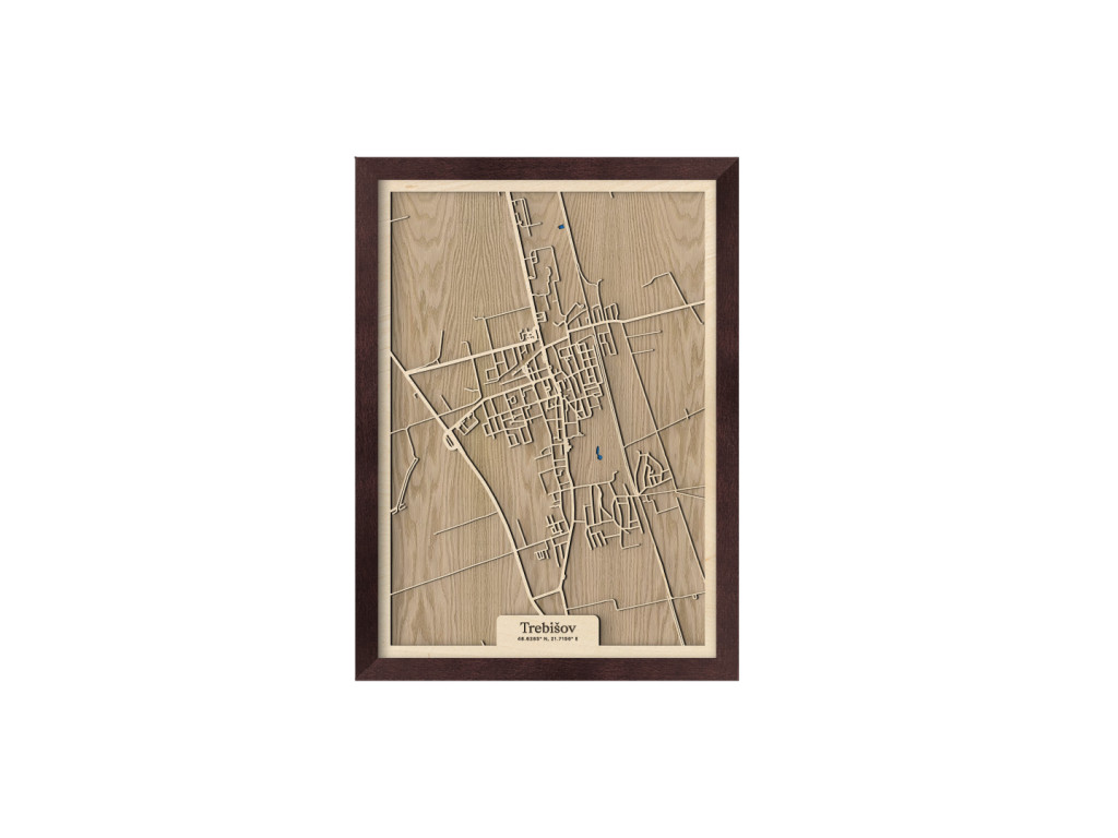 Pokúsili sme sa zarámovať centrum južného Zemplína spolu so všetkými jeho krásami. Čo myslíte, podarilo sa nám to? Drevený obraz Trebišov z kolekcie drevko CITY tak zveční časti Milhostov, Čonkáš, letisko, Nová a Stará Koronč, centrum, Mestský park s modrým jazerom uprostred, Paričov a cestu M. R. Štefánika či Komenského. Spleť ulíc Trebišova veľkostne aj farebne vyskladáme na mieru tak, aby sa dokonale hodila do vášho interiéru.