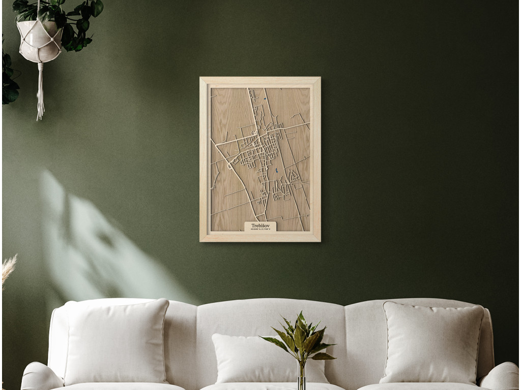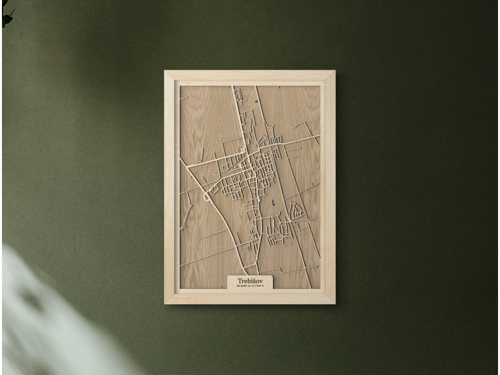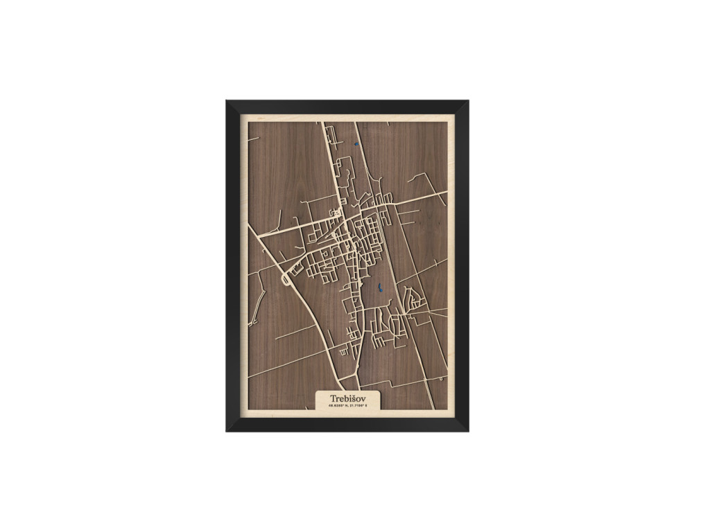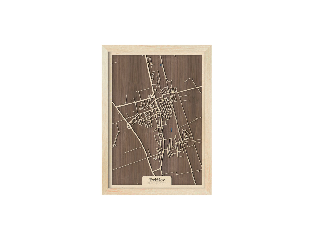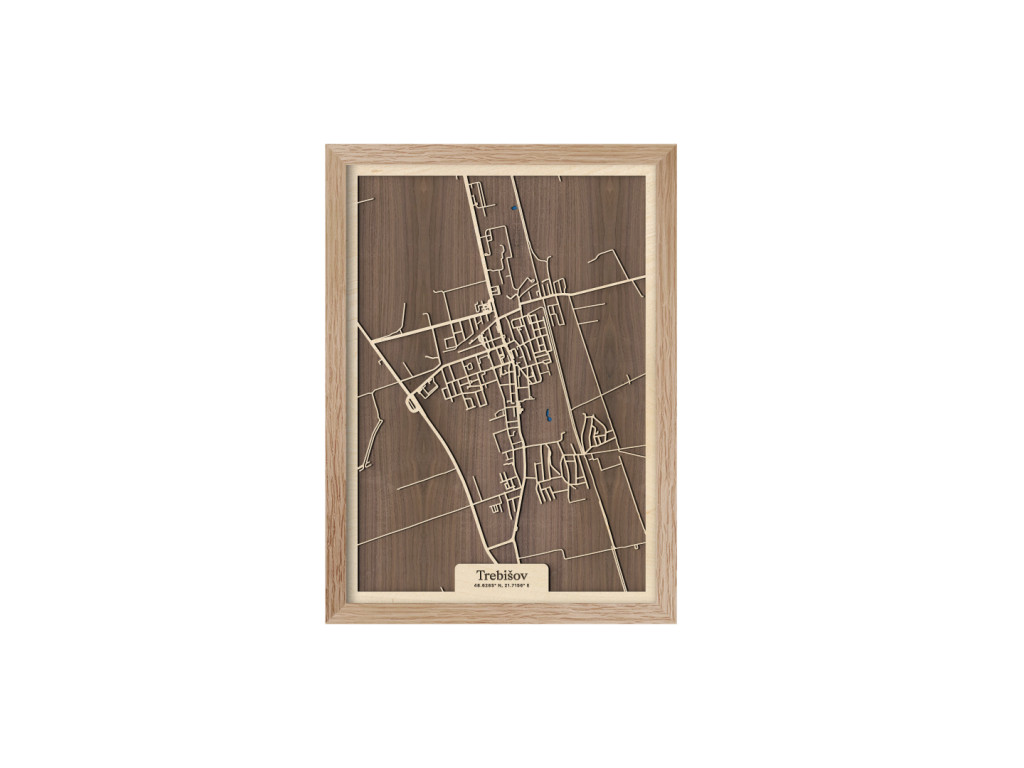 Pokúsili sme sa zarámovať centrum južného Zemplína spolu so všetkými jeho krásami. Čo myslíte, podarilo sa nám to? Drevený obraz Trebišov z kolekcie drevko CITY tak zveční časti Milhostov, Čonkáš, letisko, Nová a Stará Koronč, centrum, Mestský park s modrým jazerom uprostred, Paričov a cestu M. R. Štefánika či Komenského. Spleť ulíc Trebišova veľkostne aj farebne vyskladáme na mieru tak, aby sa dokonale hodila do vášho interiéru.